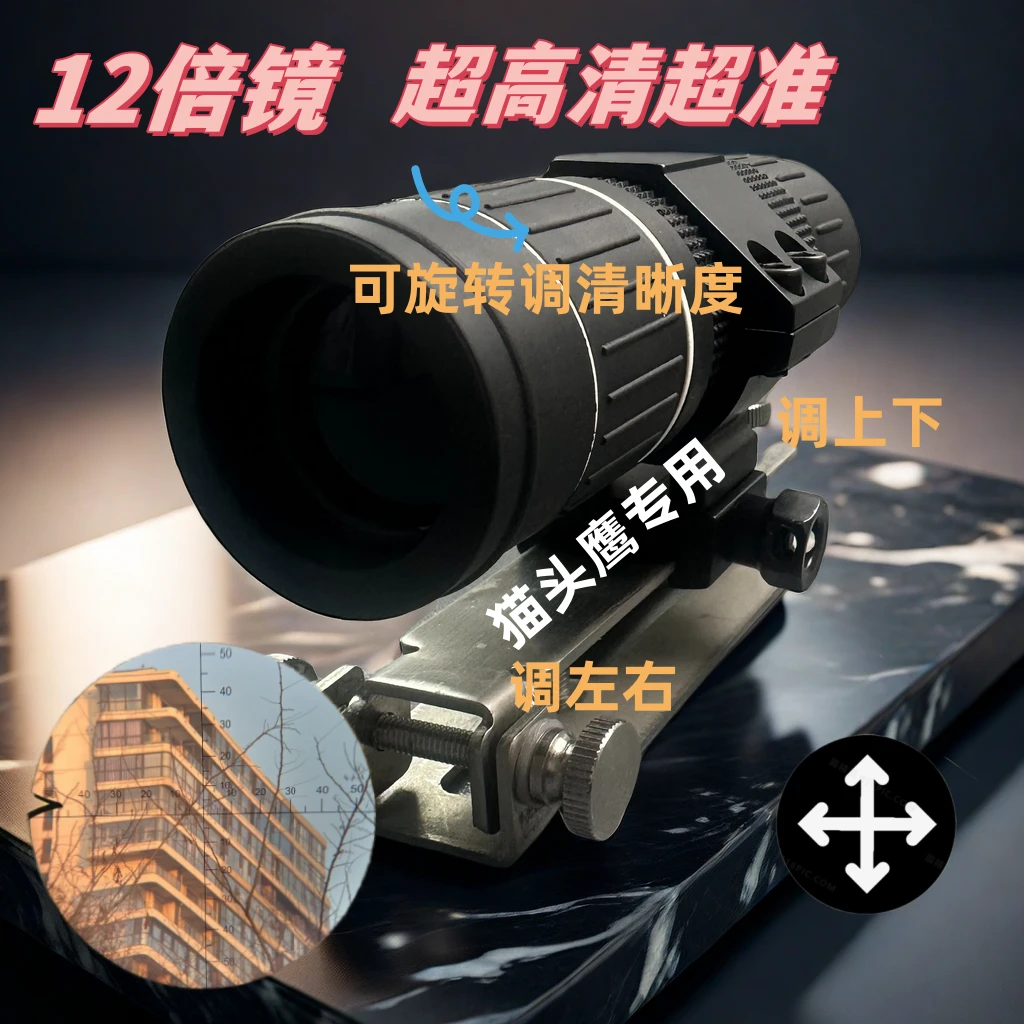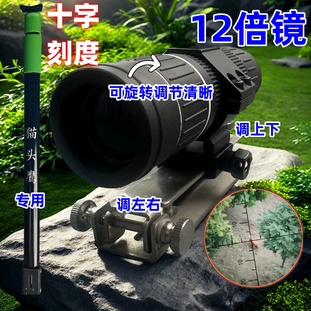 新款12倍瞄靶神器精准十字高精度望远镜可调支架观猫头鹰用高倍镜