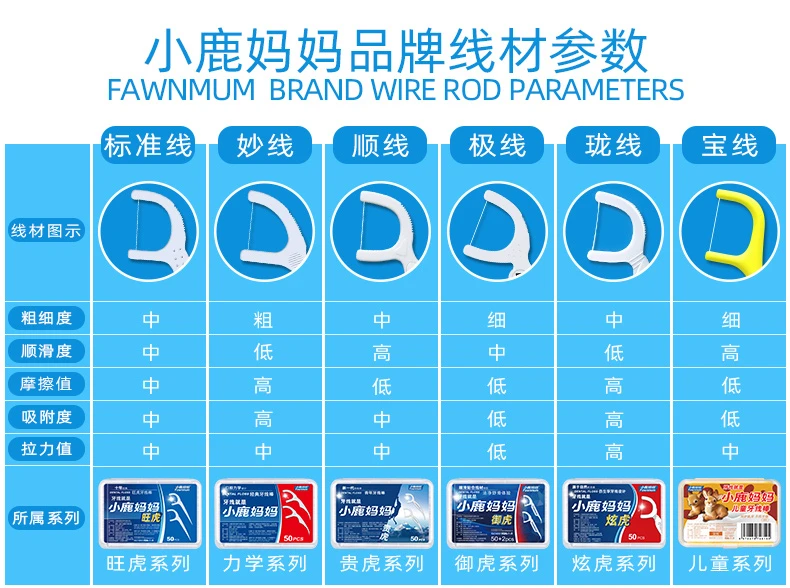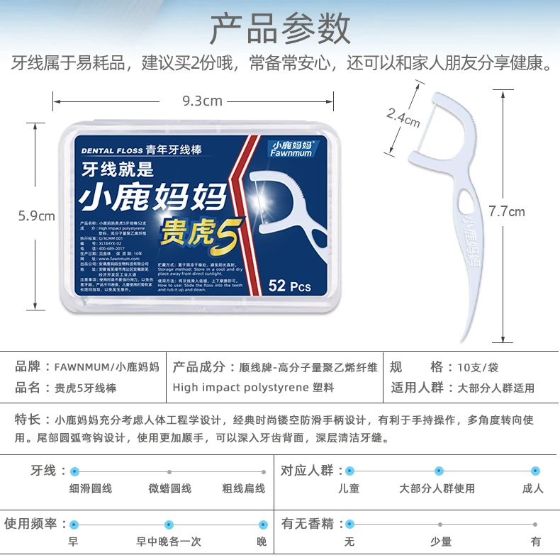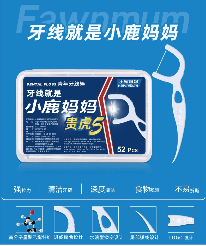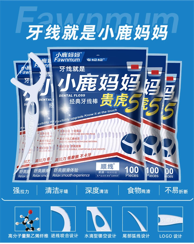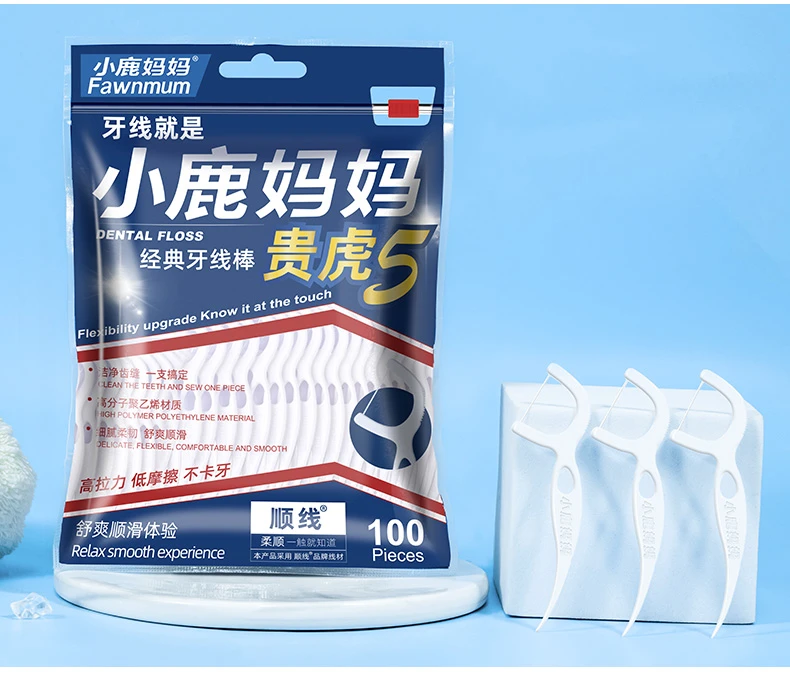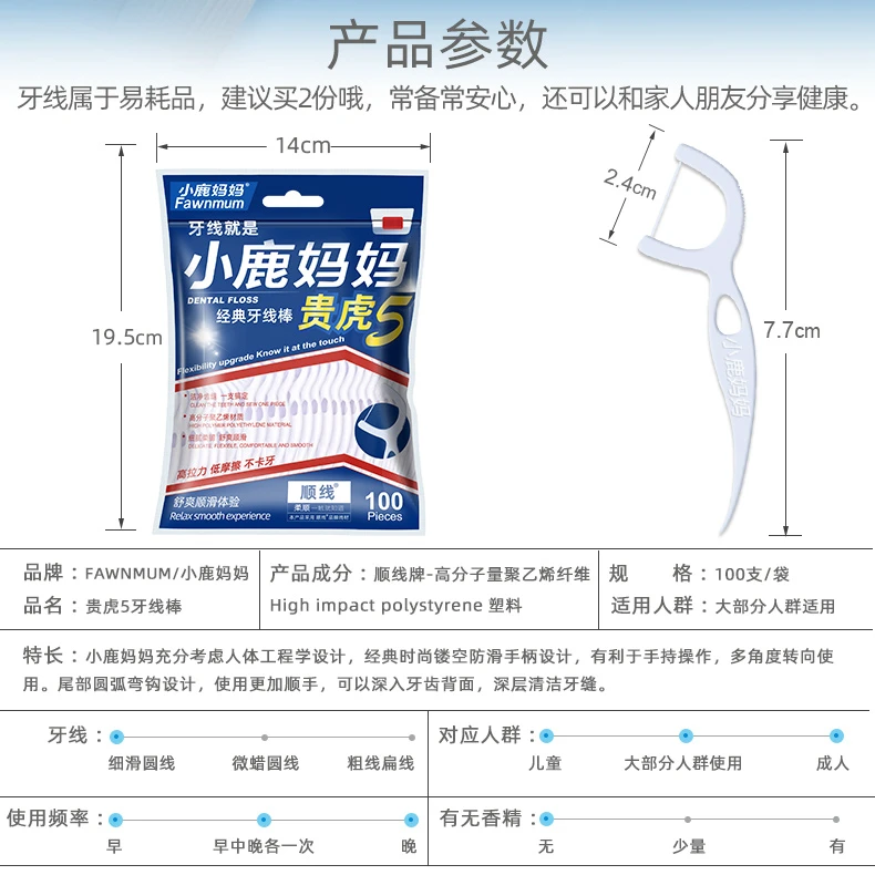 小鹿妈妈经典牙线棒超细清洁牙缝舒适深洁家庭大包装牙线盒剔牙线
