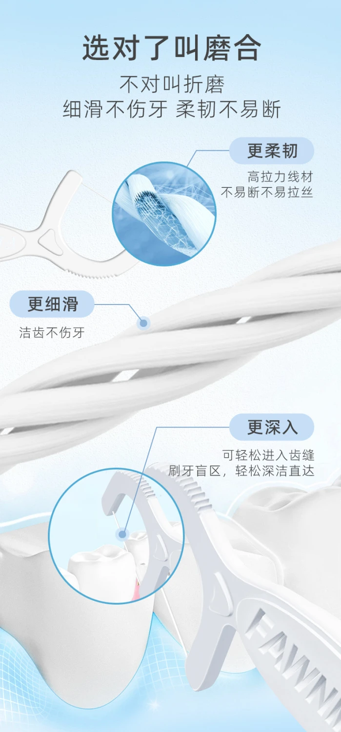 | high quality 50+30 fine floss(高品质50支+细滑牙线30支) | USD $1.36 | 999999 piece available |