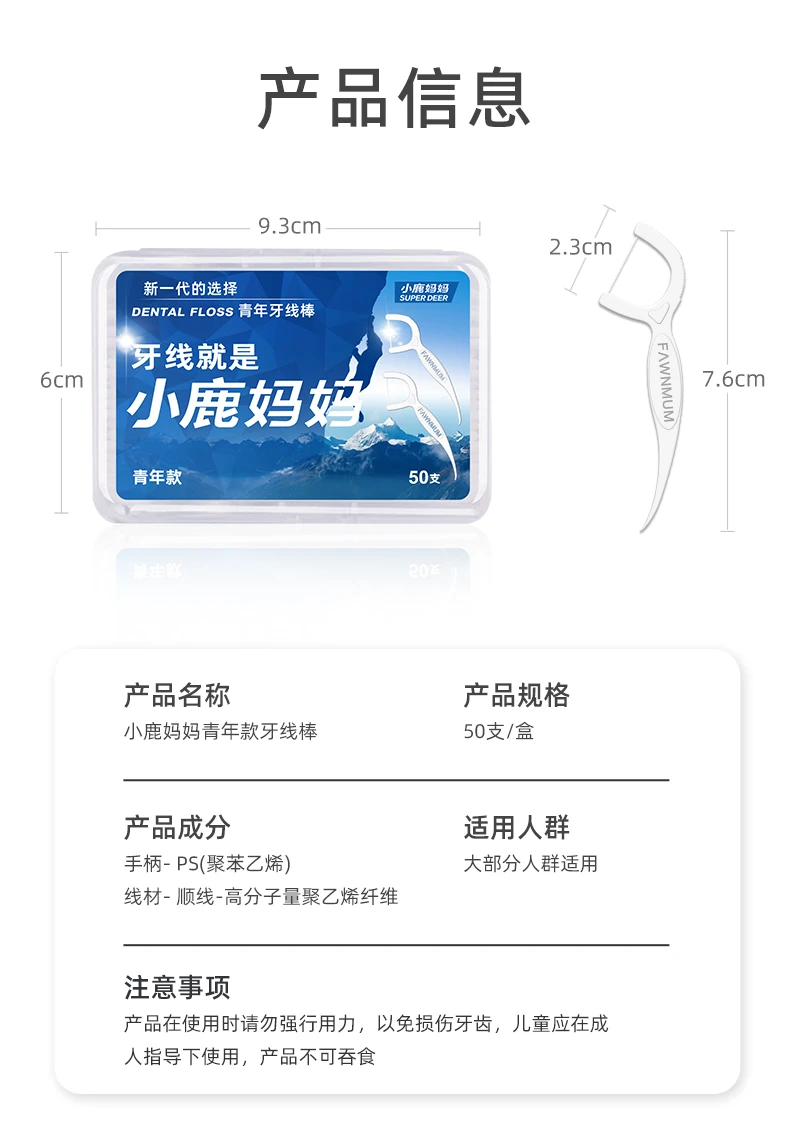 小鹿妈妈细滑牙线高顺滑牙线剔牙签家庭装独立装一次性清洁家用款