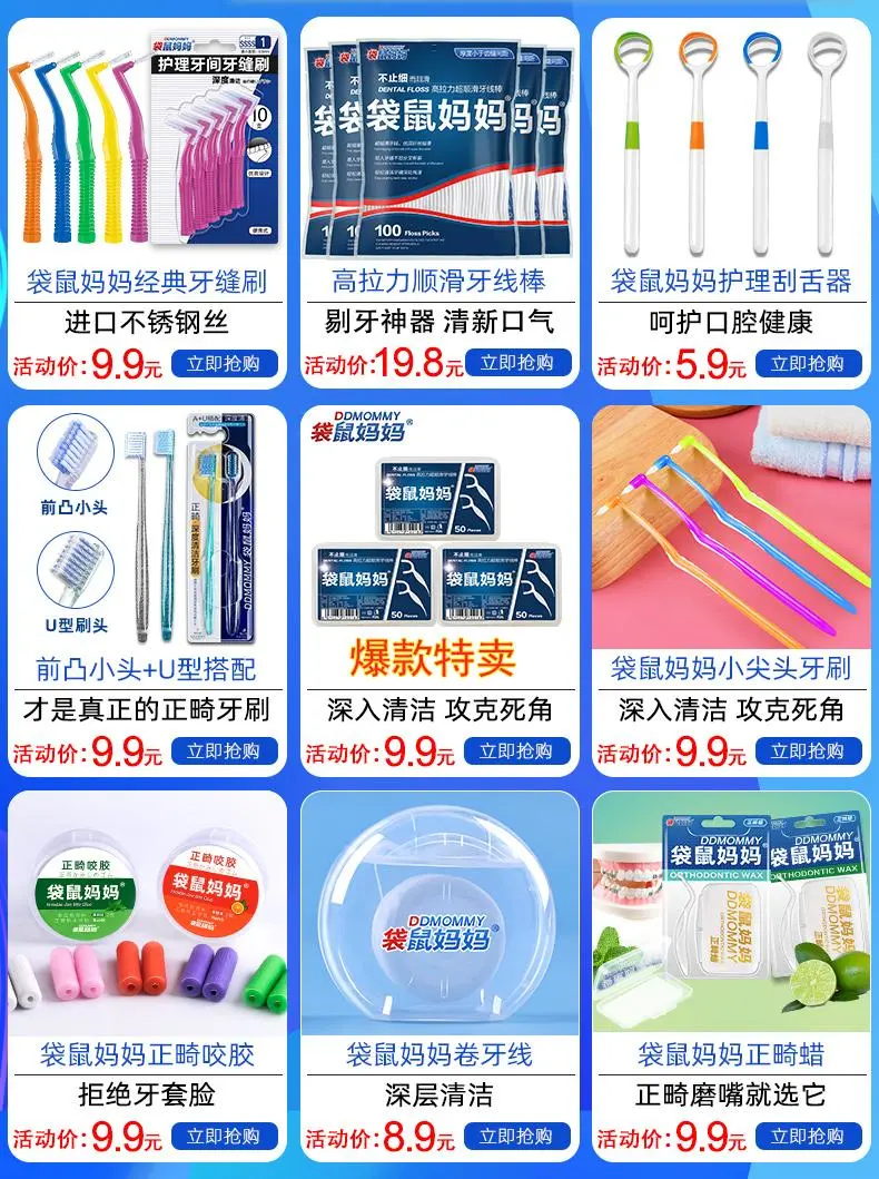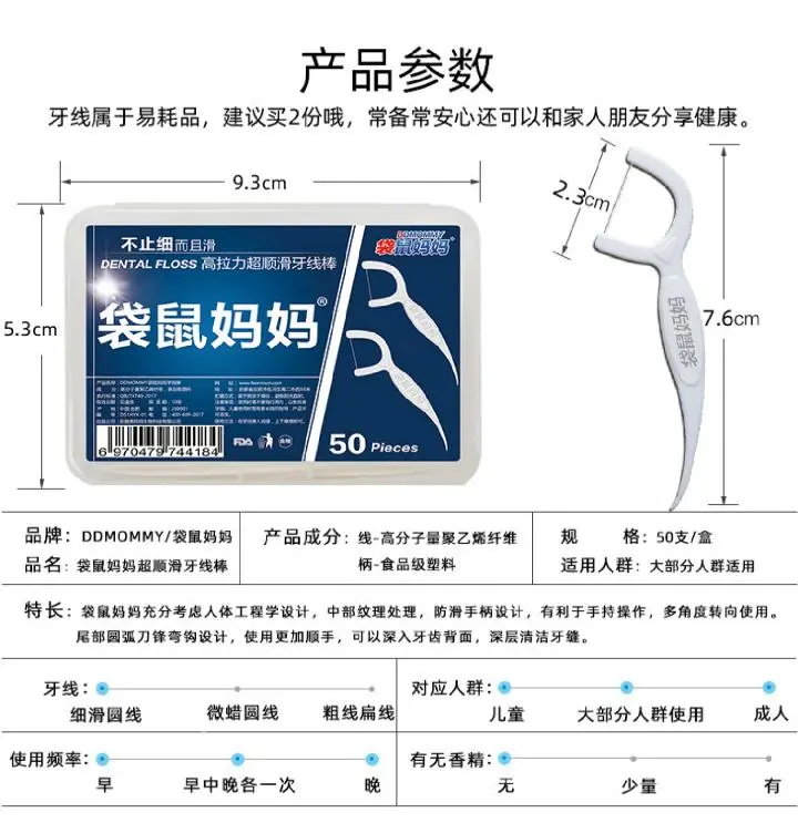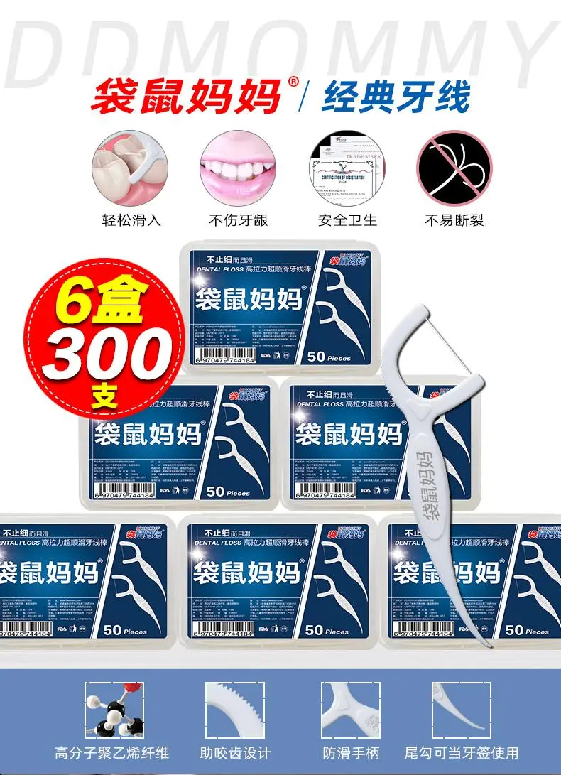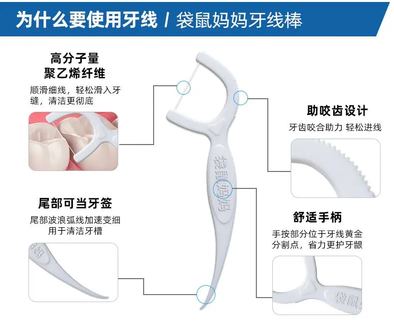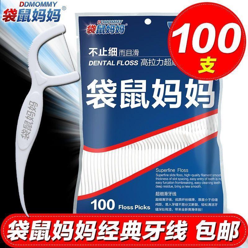 袋鼠妈妈牙线棒超细顺滑剔牙神器家庭装安全牙线棒独立包装牙线签
