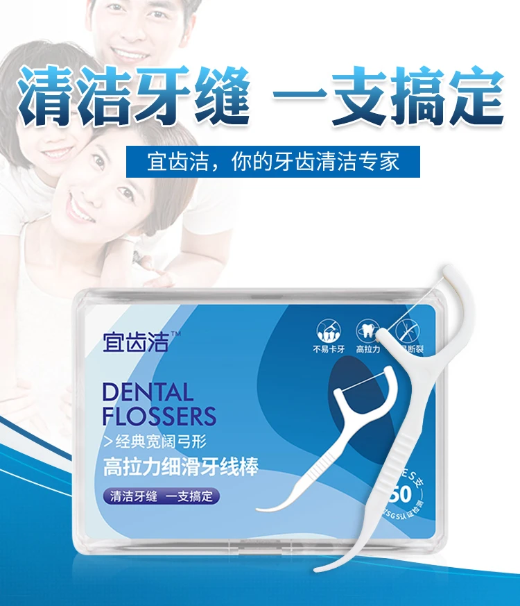 宜齿洁超细牙线高拉力一次性牙线棒家庭装弓形剔牙线牙签
