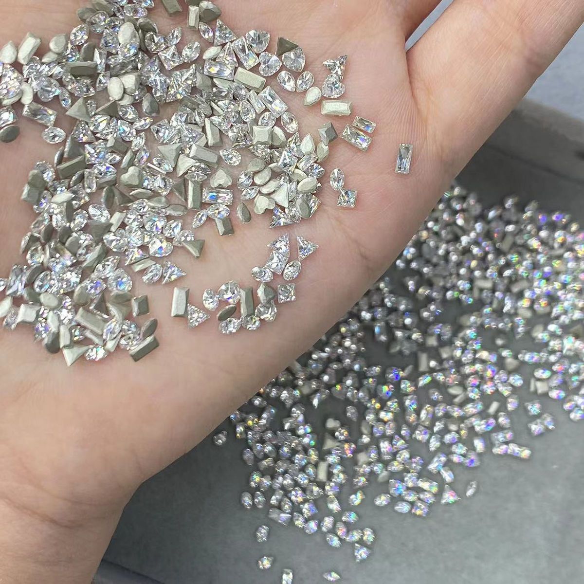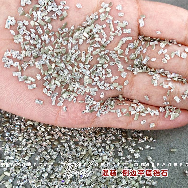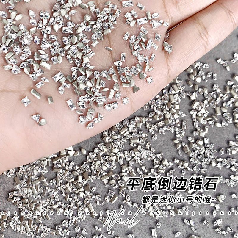 美甲锆石倒边平底超闪饰品迷你白色混装小号爆闪指甲钻超装饰新款