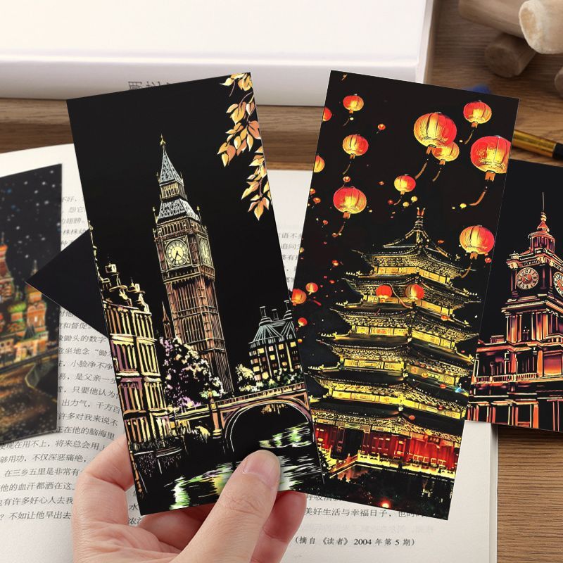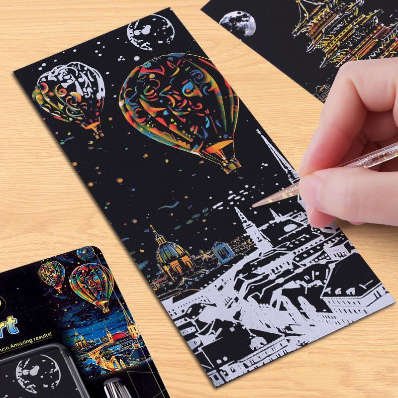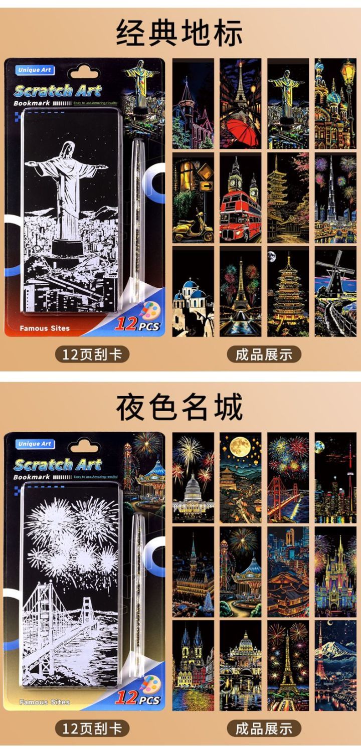 刮刮画彩色城市夜景刮画纸diy手工刮画创意手工便签画解压描红本
