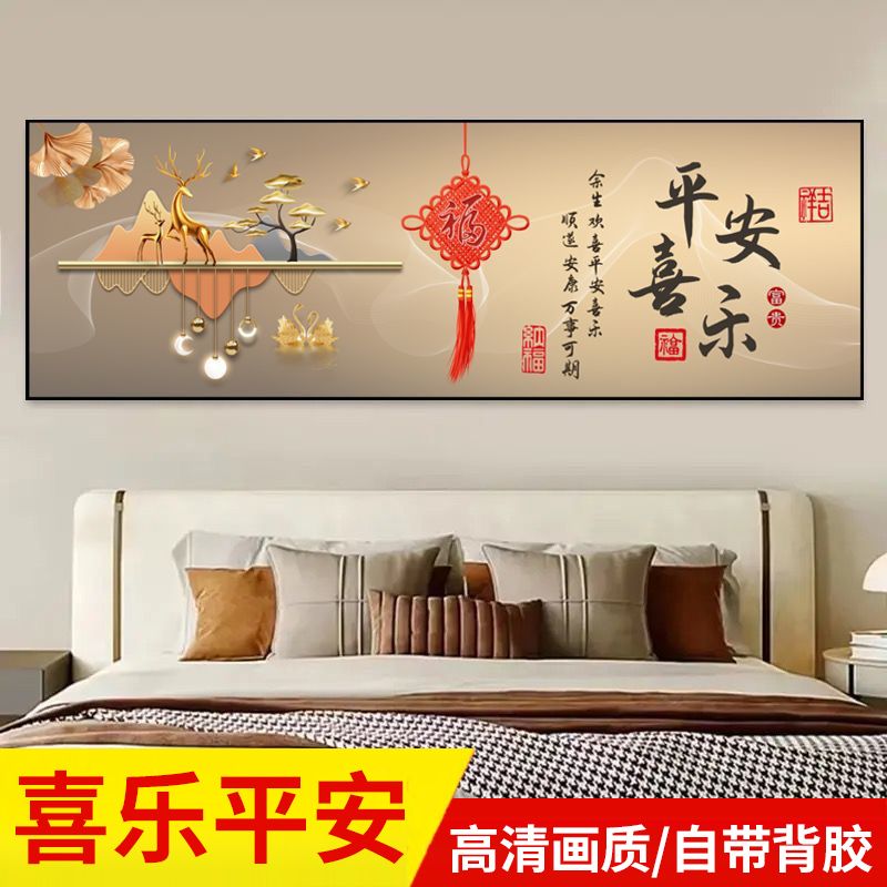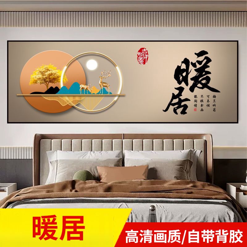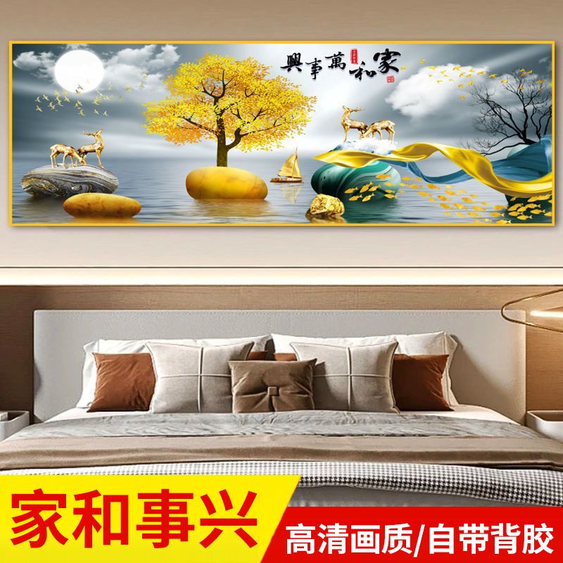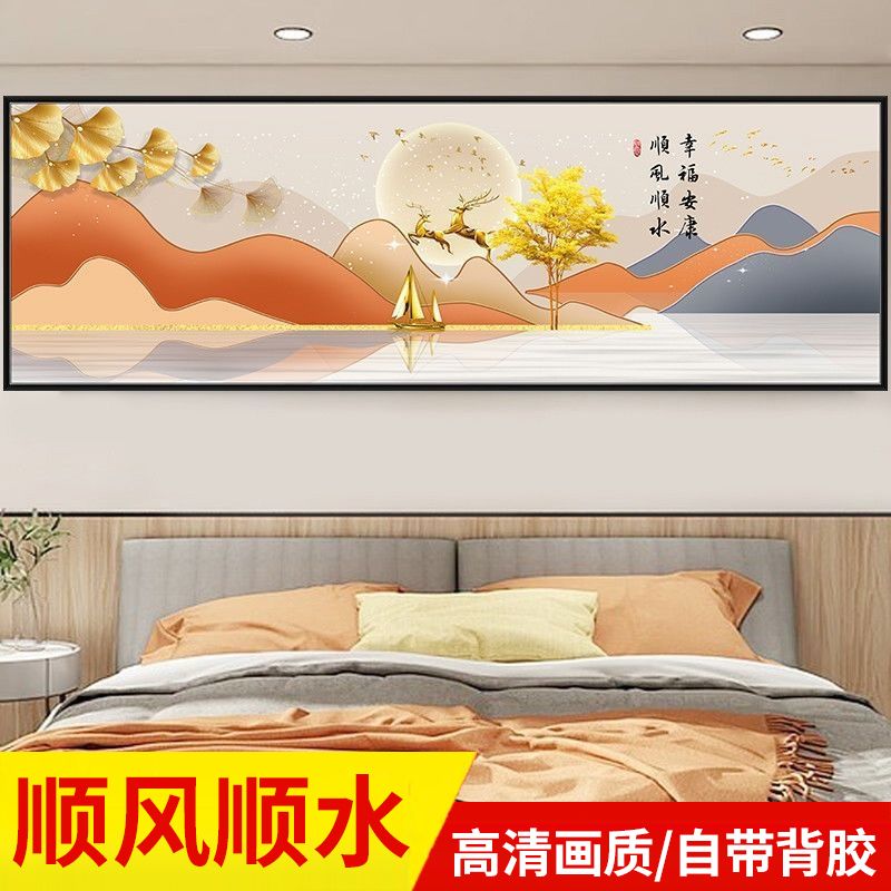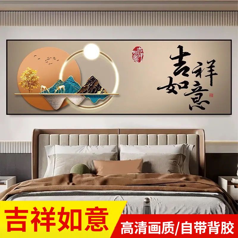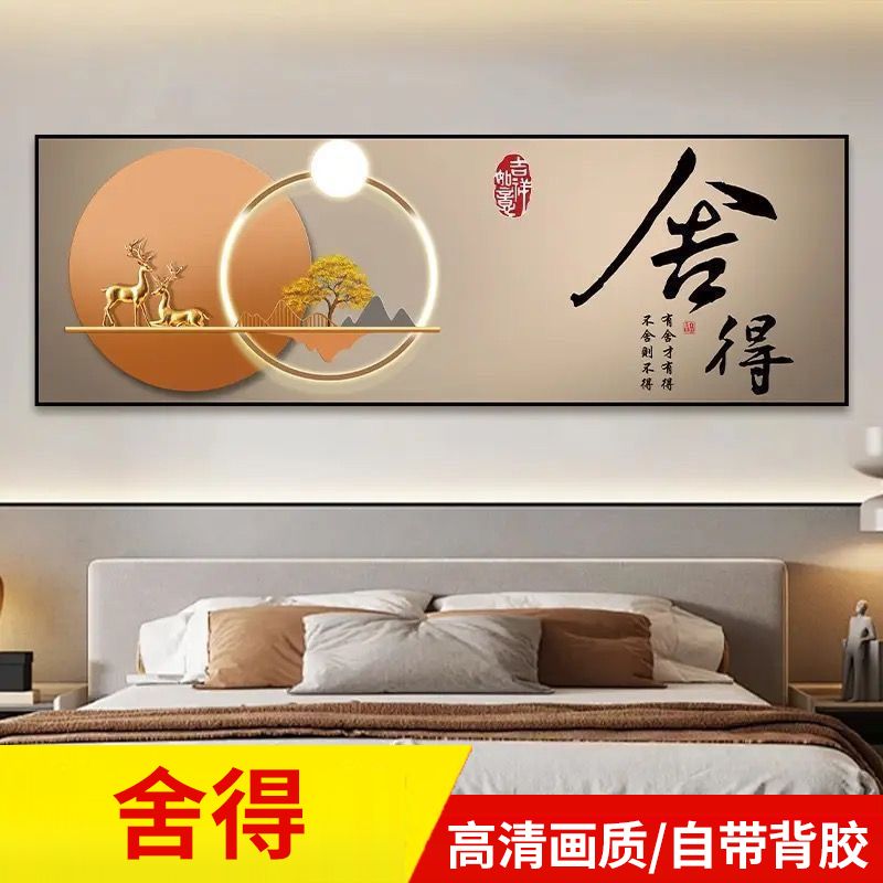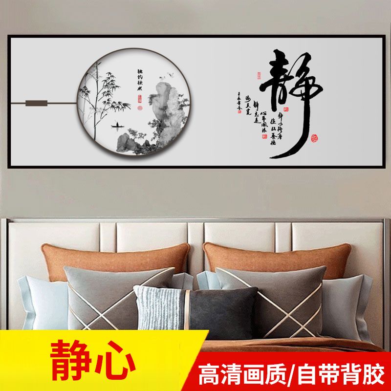 粘贴画床头墙贴画卧室禅意自粘画现代客厅走廊背景墙酒店背靠壁画