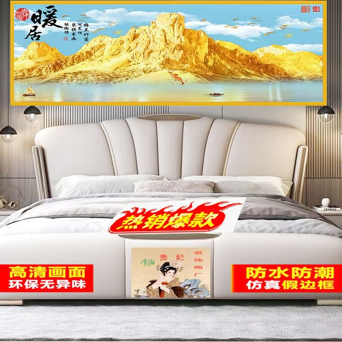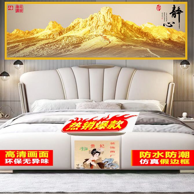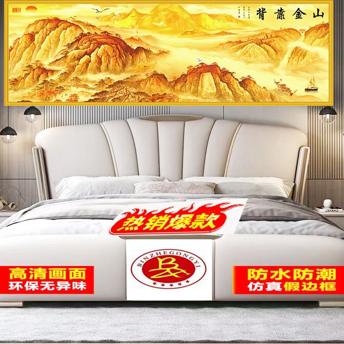 新款背靠金山自粘床头画现代简约客厅背靠金山暖居主卧宾馆静心