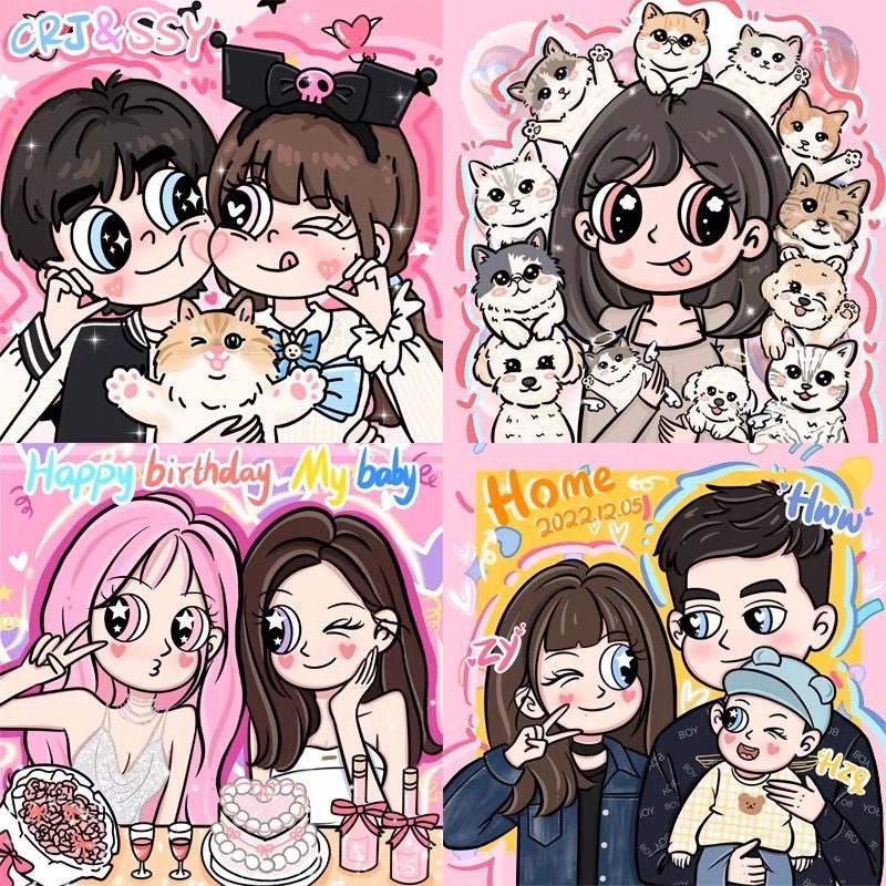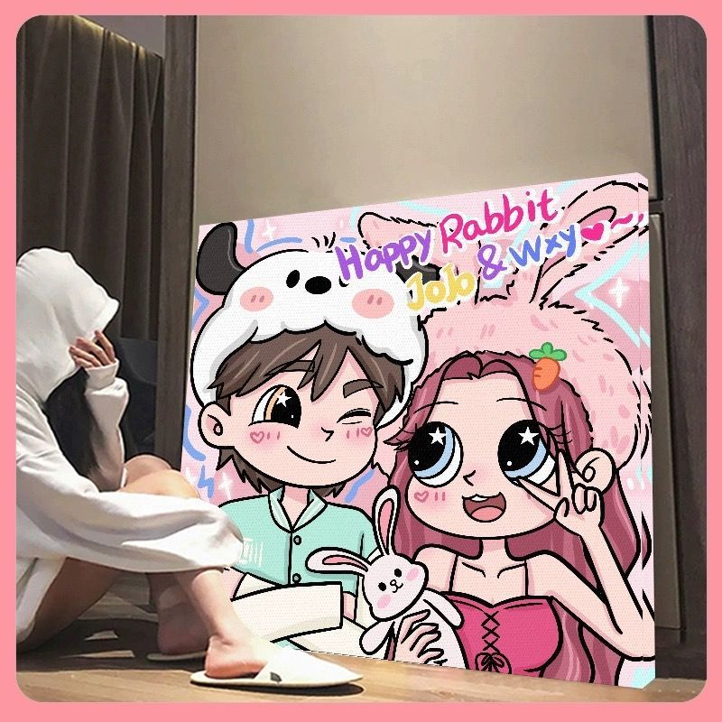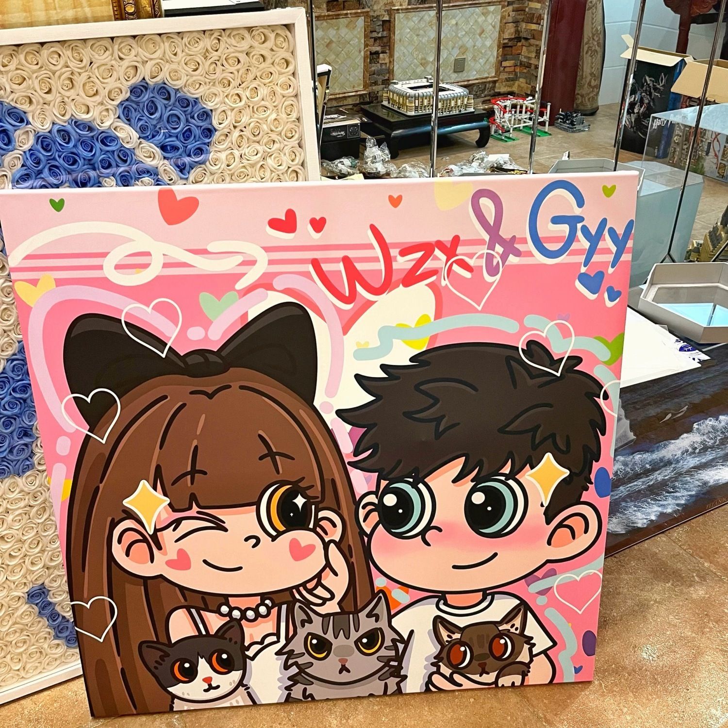 网红定制画油画布星蝶公主情侣闺蜜艺术级无框画漫画卡通来图喷绘