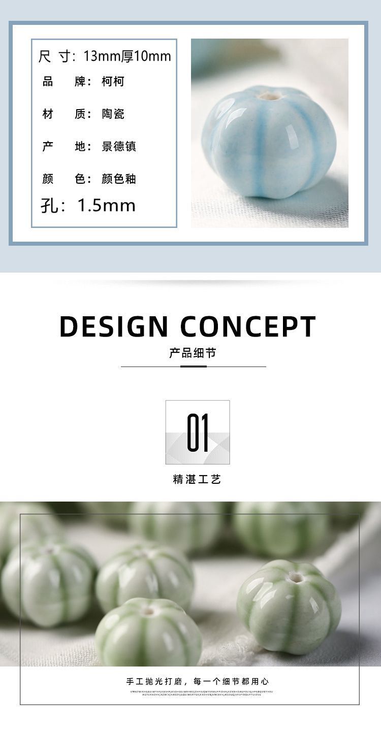 景德镇陶瓷珠子DIY散珠编织手链项链材料 学生女自制串珠南瓜瓷珠