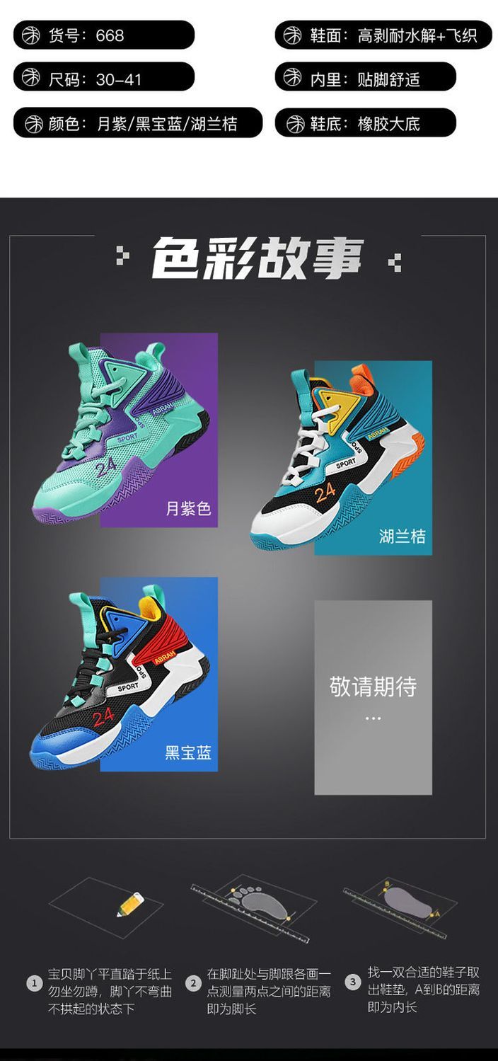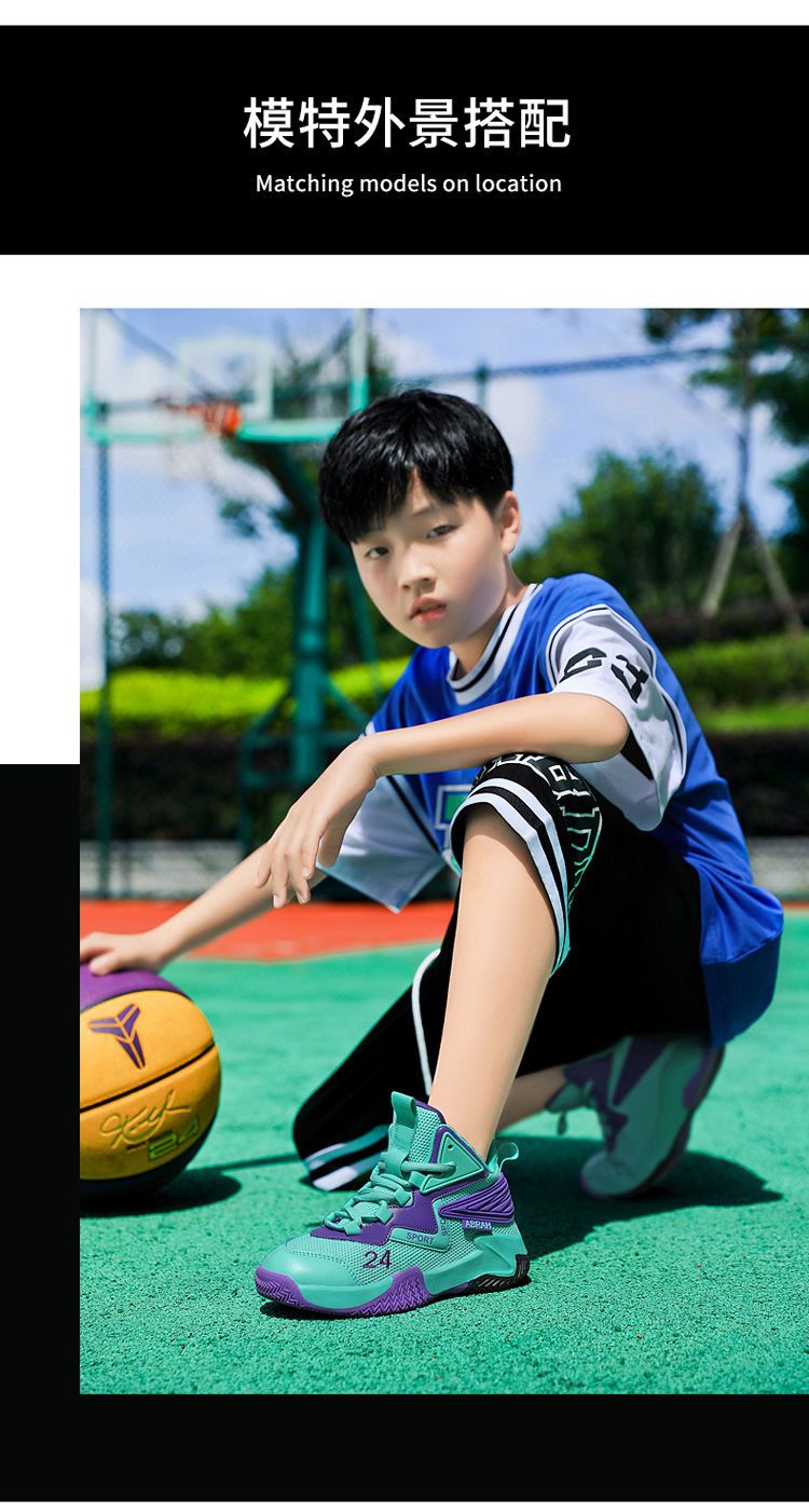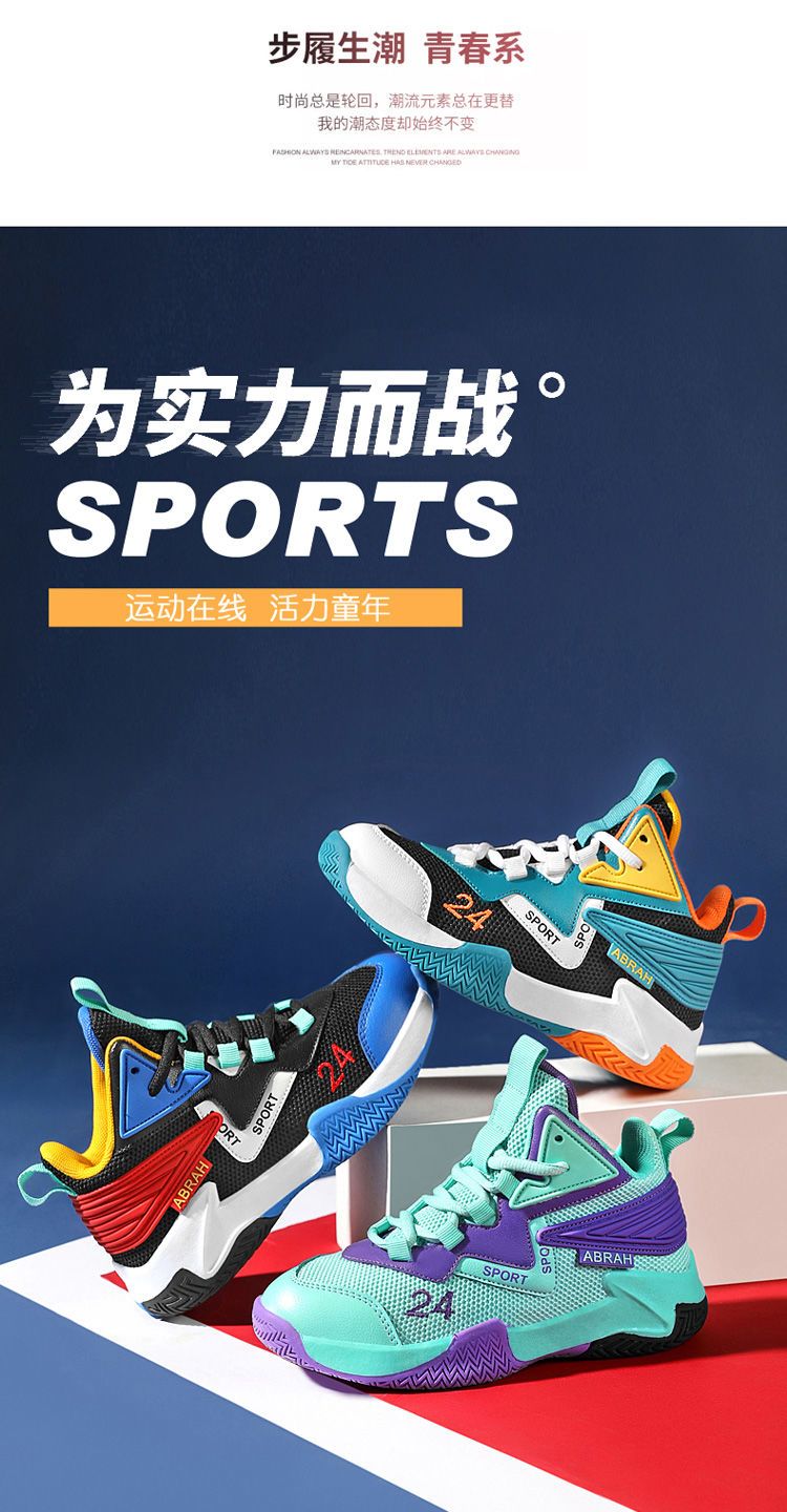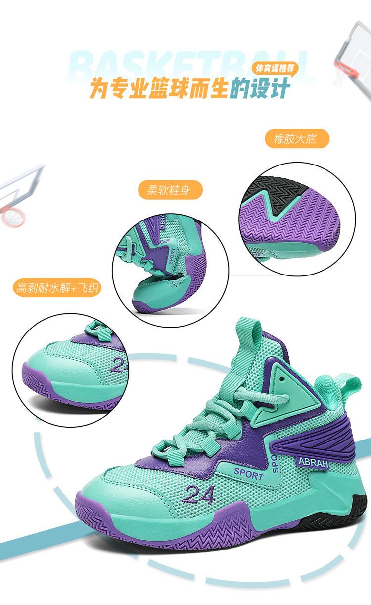 科比24号儿童篮球鞋夏季网面透气小学生摩擦有声音12男童运动鞋男