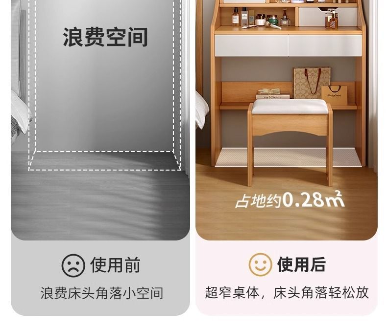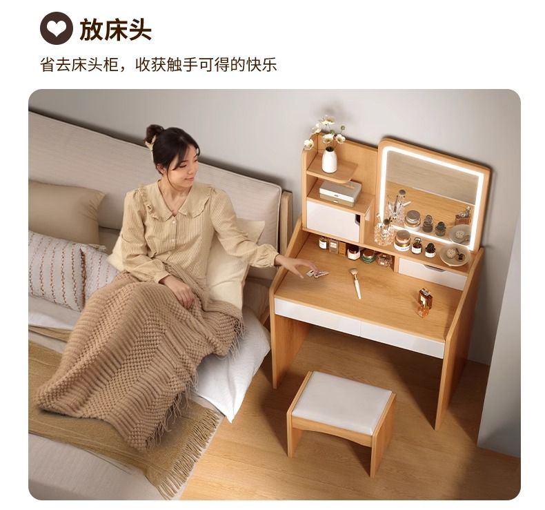 梳妆台小型卧室简约现代小户型床头柜化妆台一体迷你化妆桌出租房