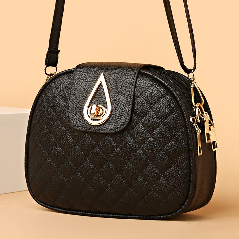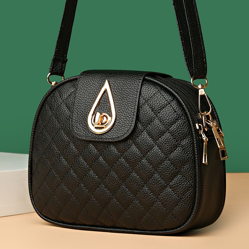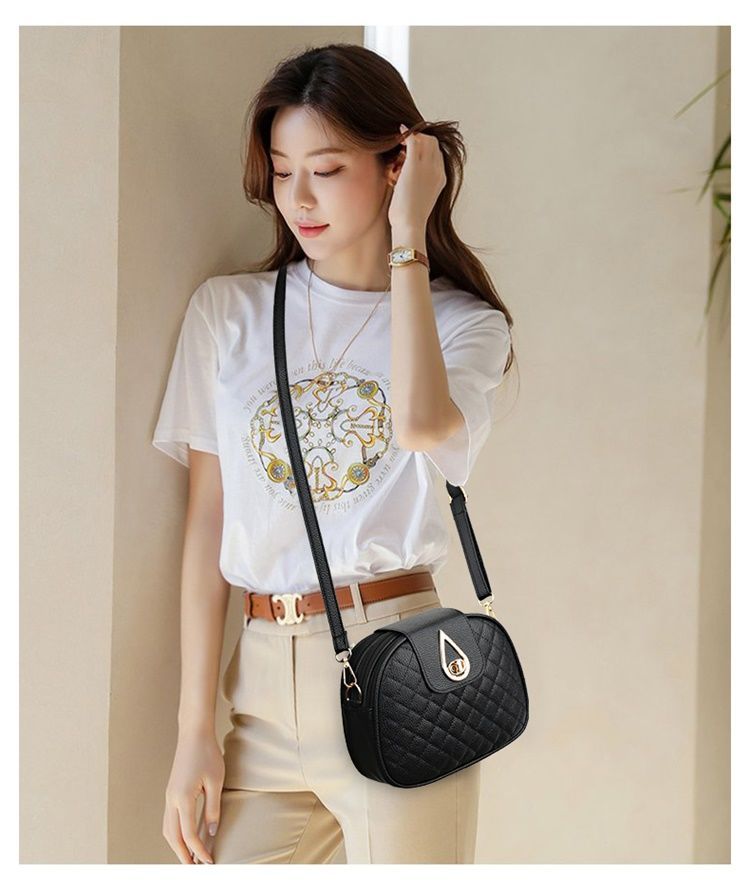 斜挎包女小包新款洋气手机包韩版休闲百搭复古单肩菱格绣线小圆包