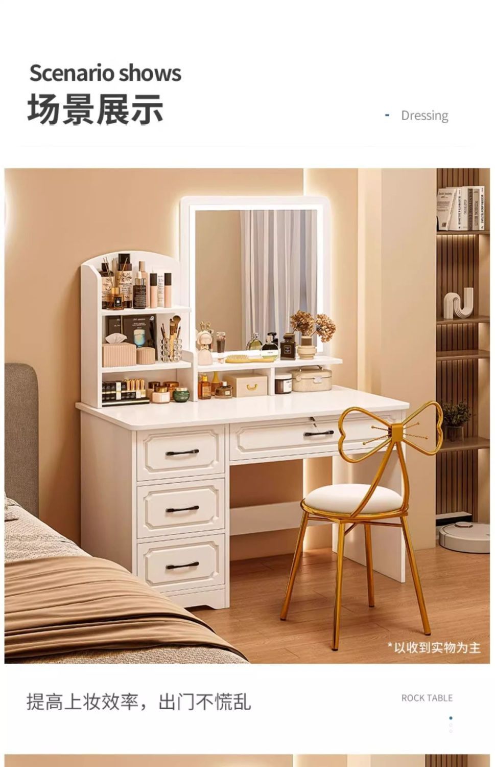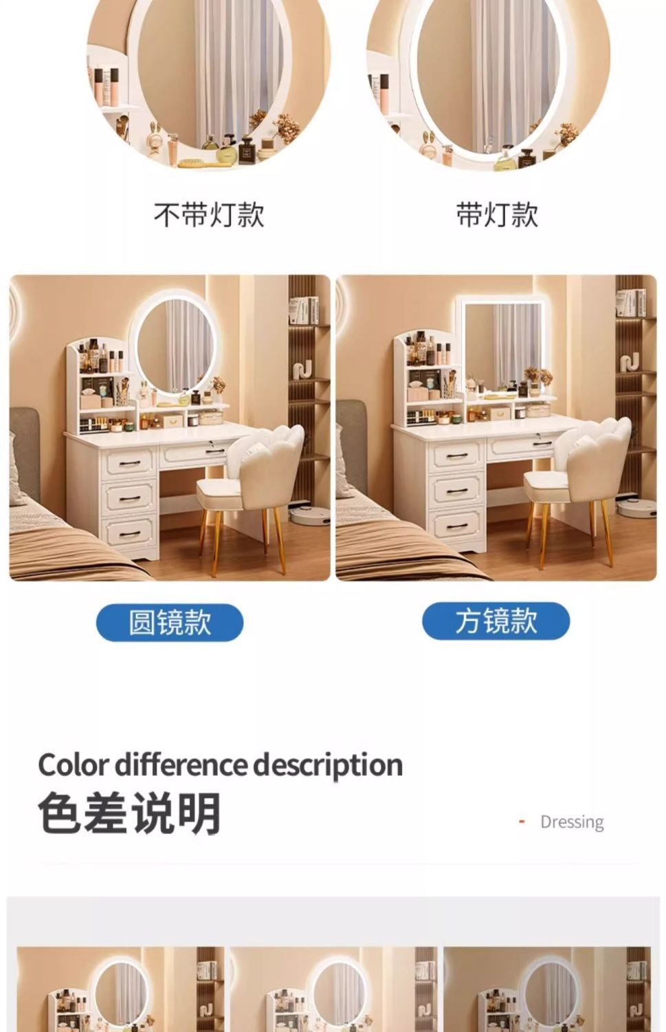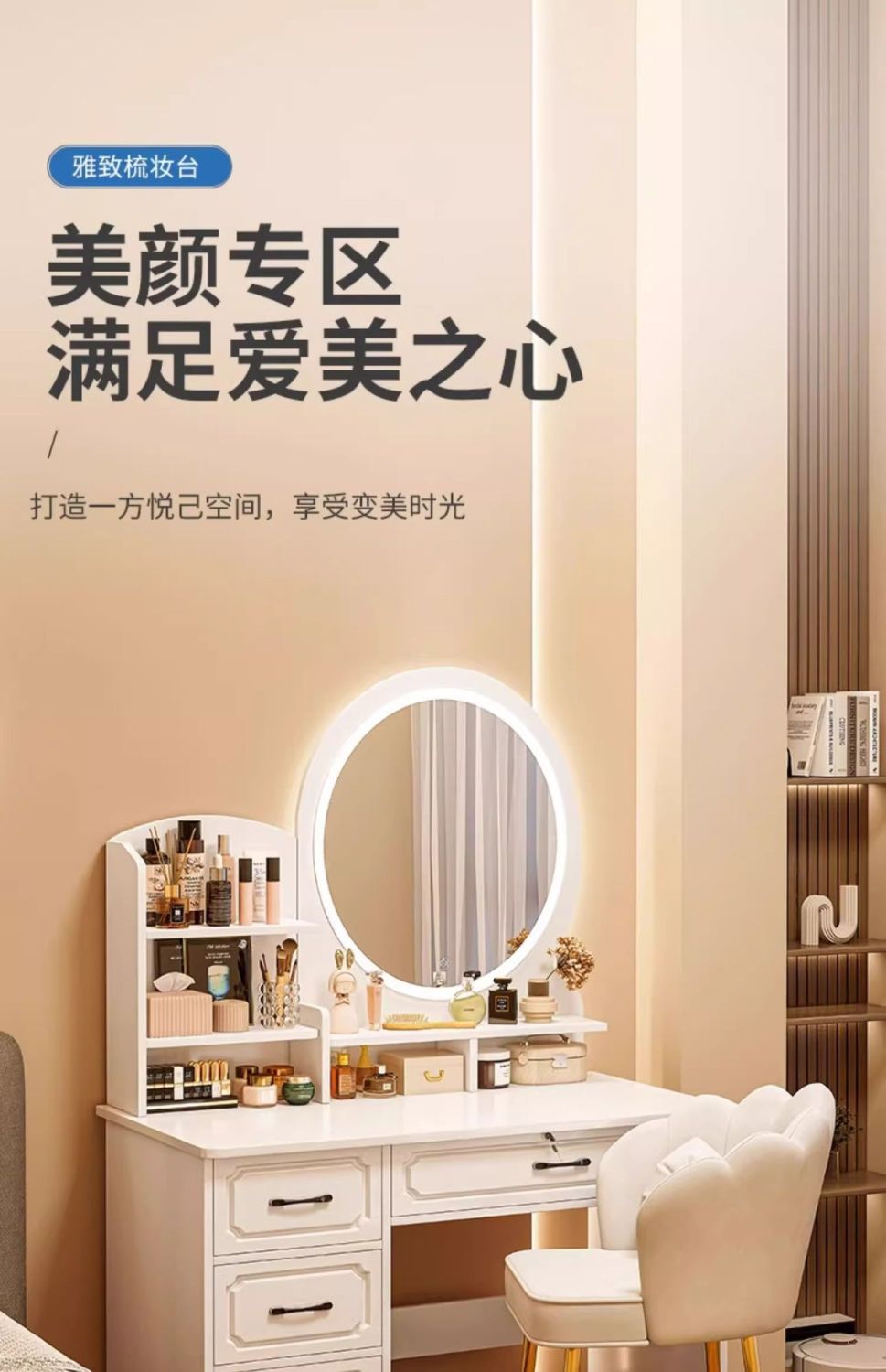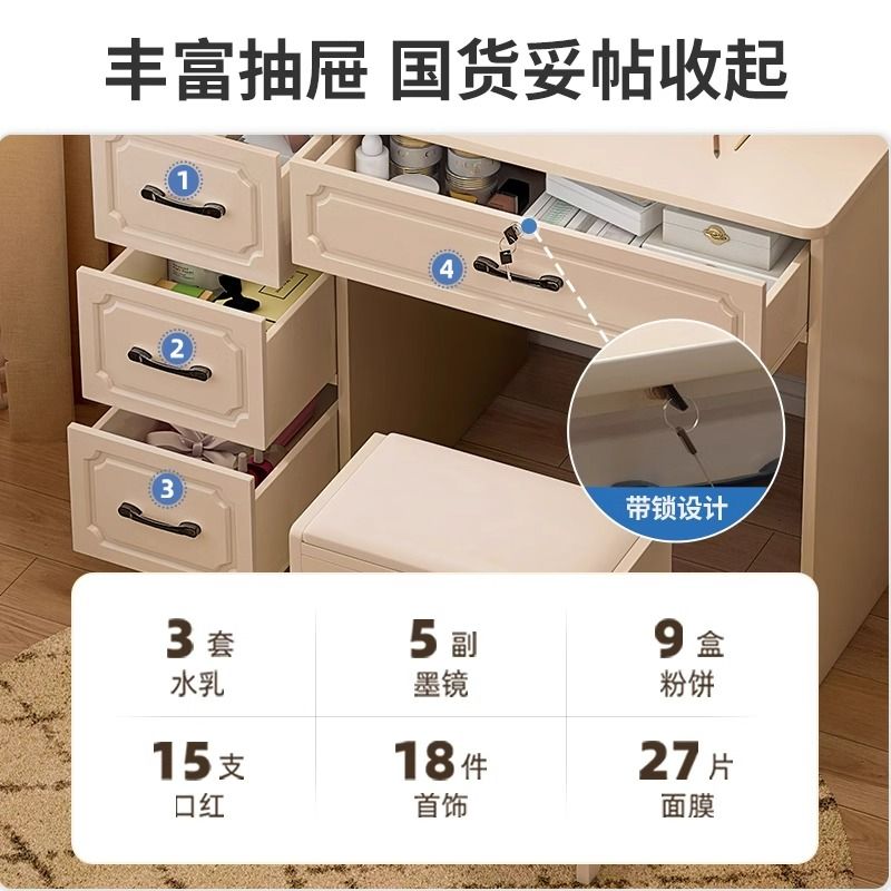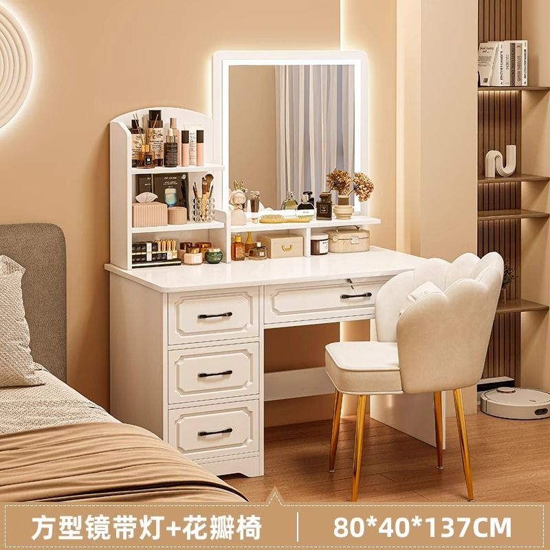 梳妆台卧室化妆台简约小户型镜子带灯出租房化妆桌组合收纳梳妆桌