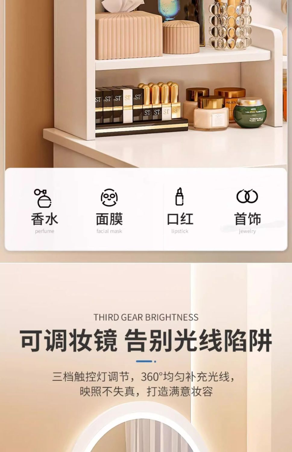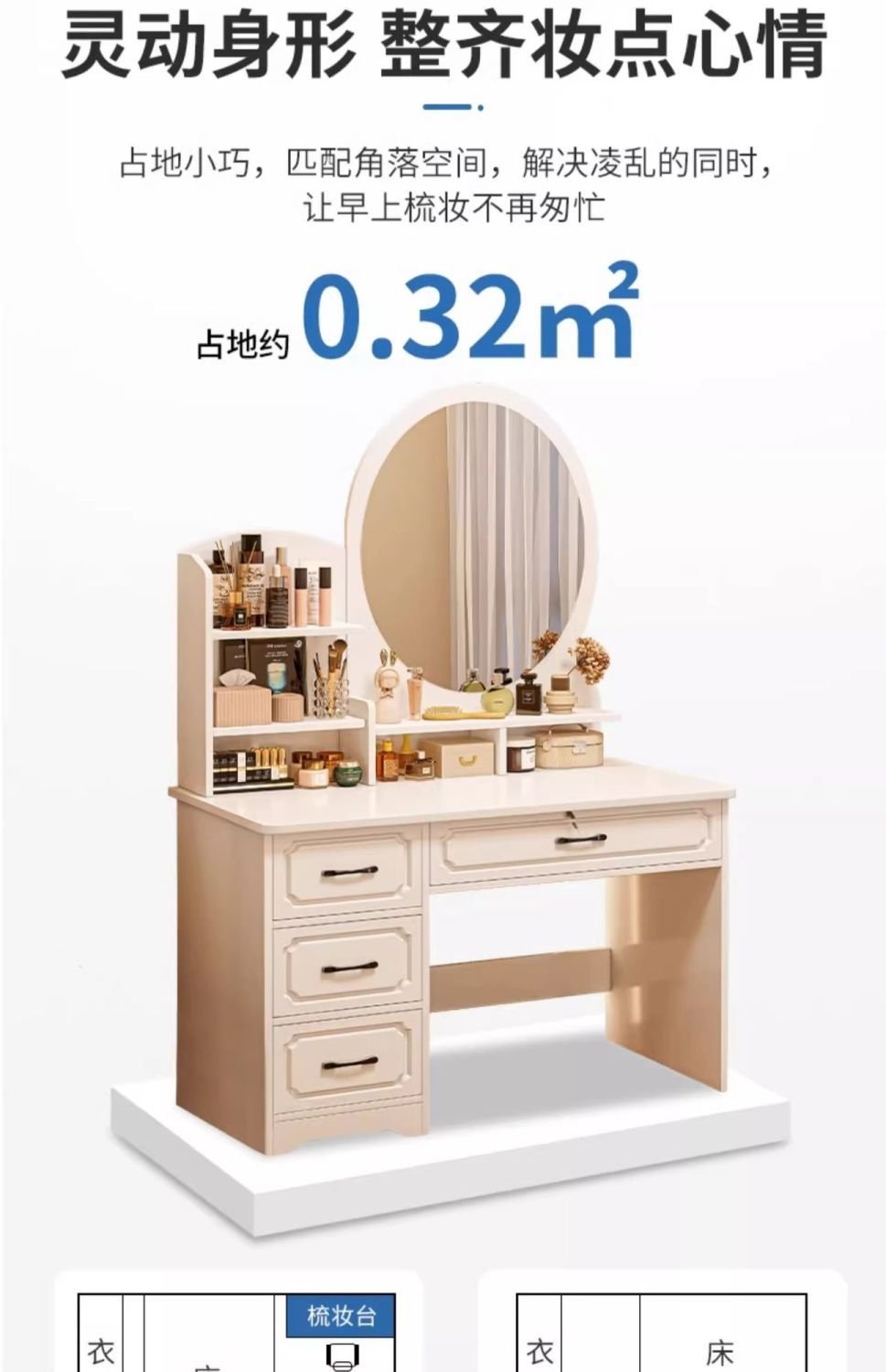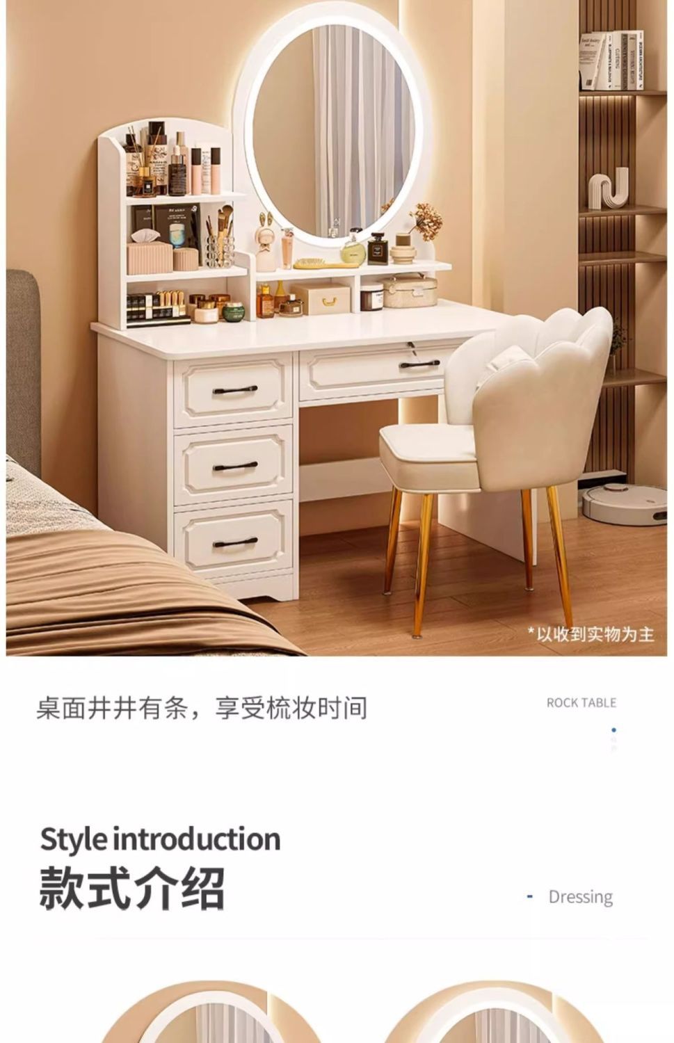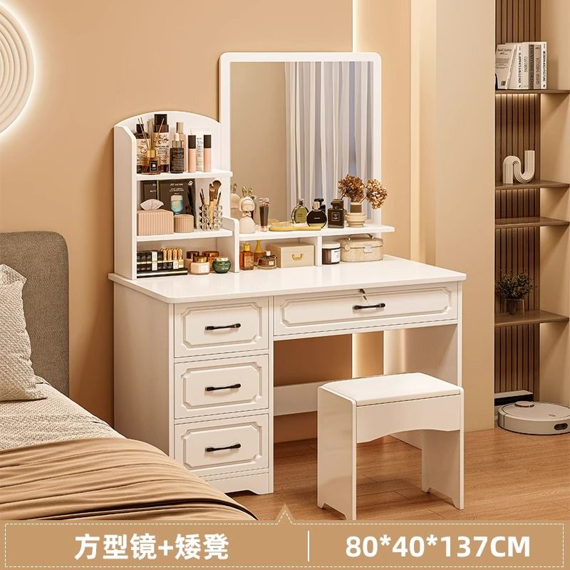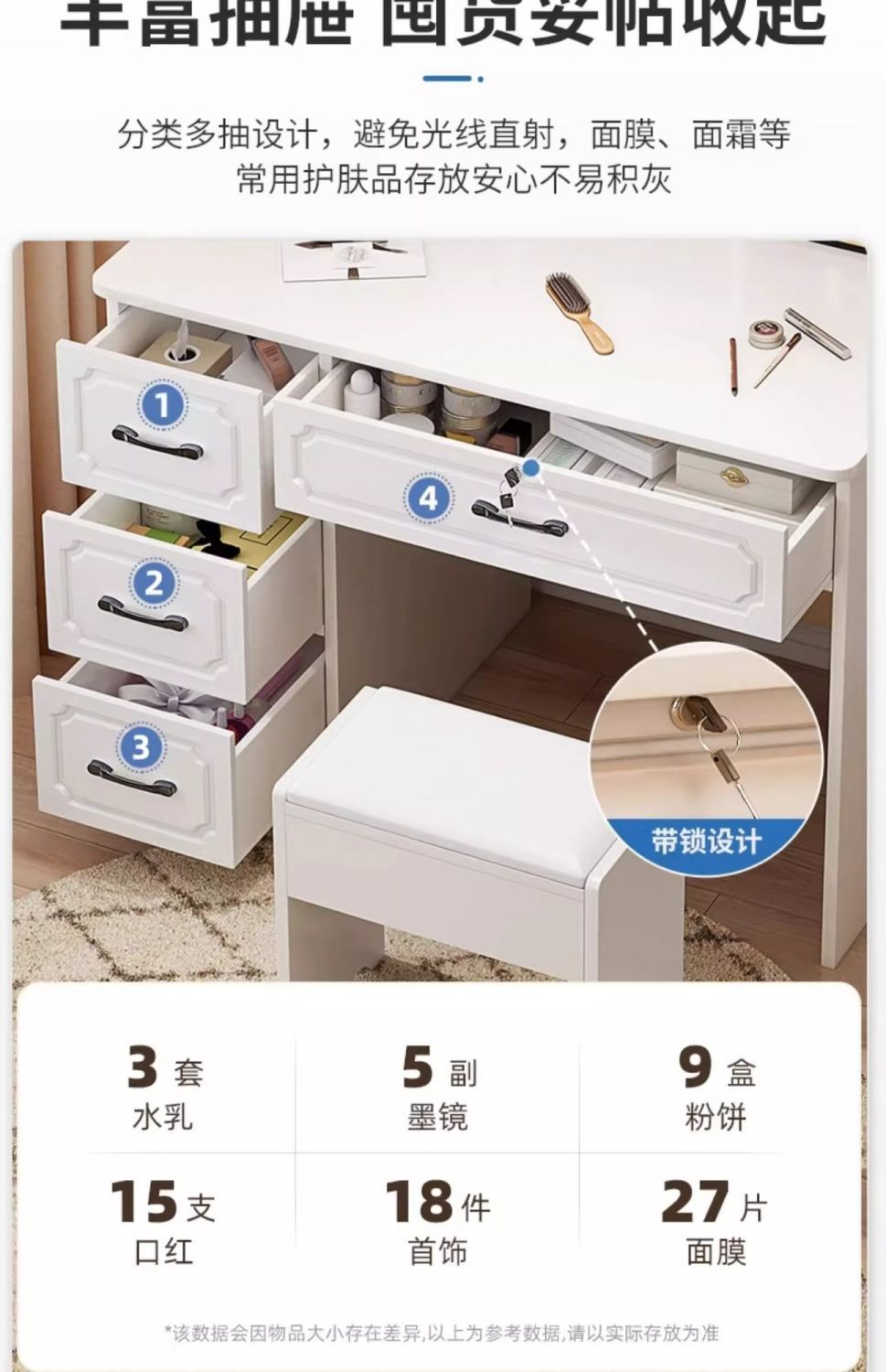 梳妆台卧室化妆台简约小户型镜子带灯出租房化妆桌组合收纳梳妆桌