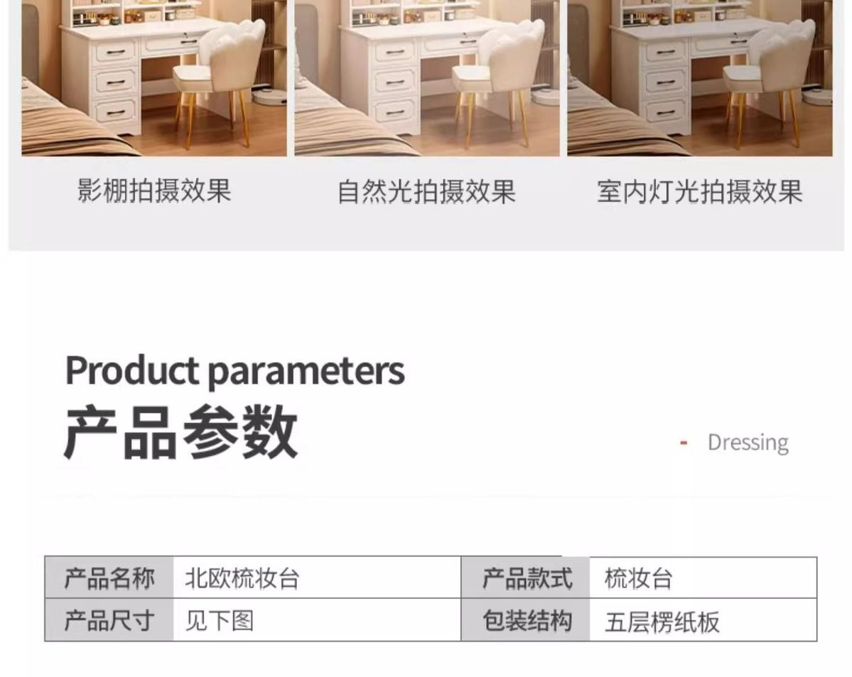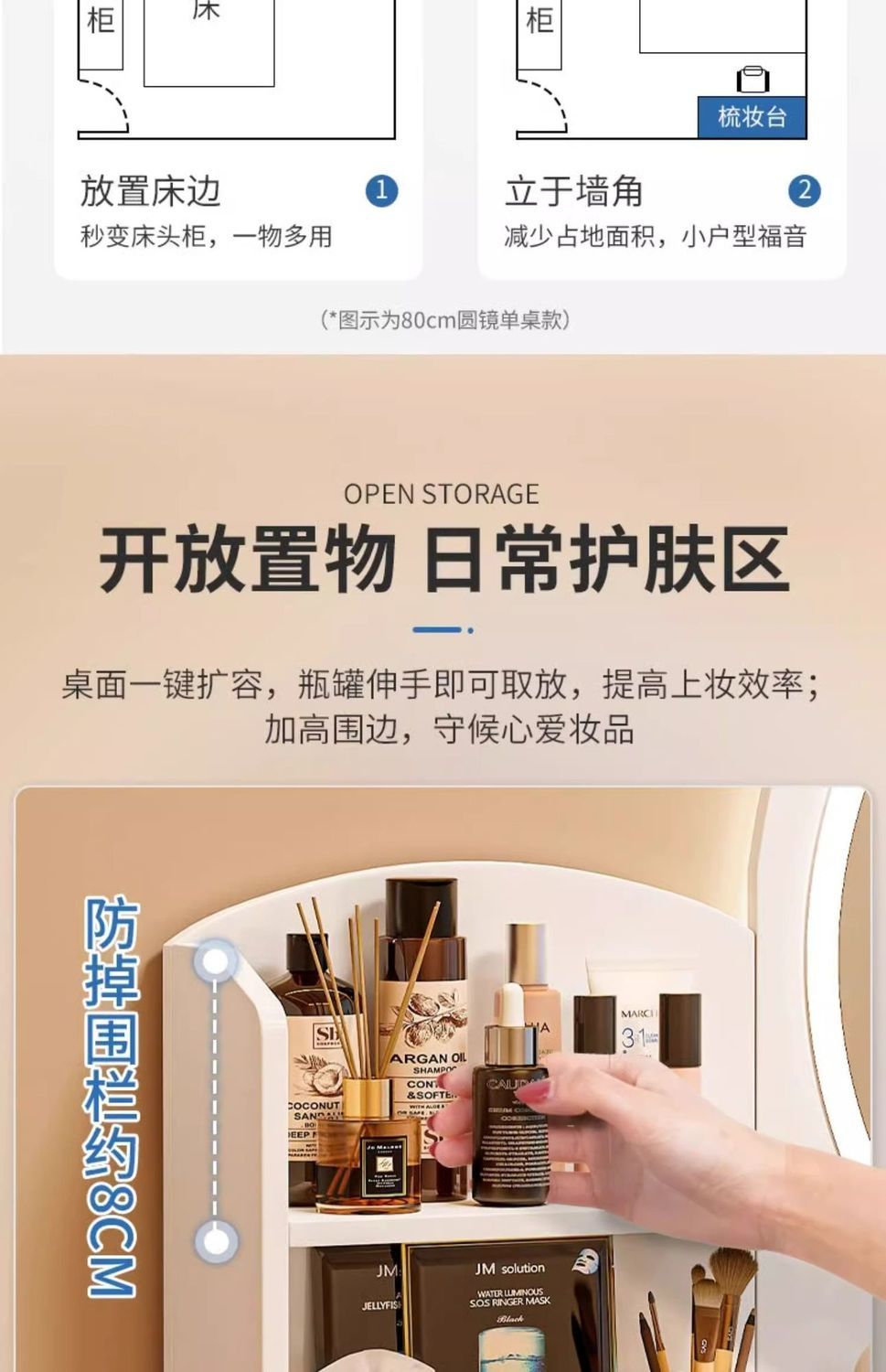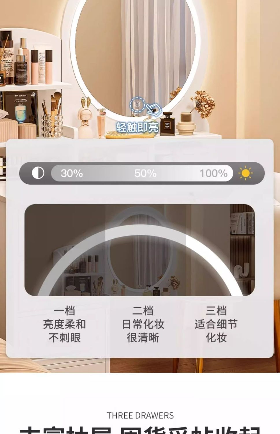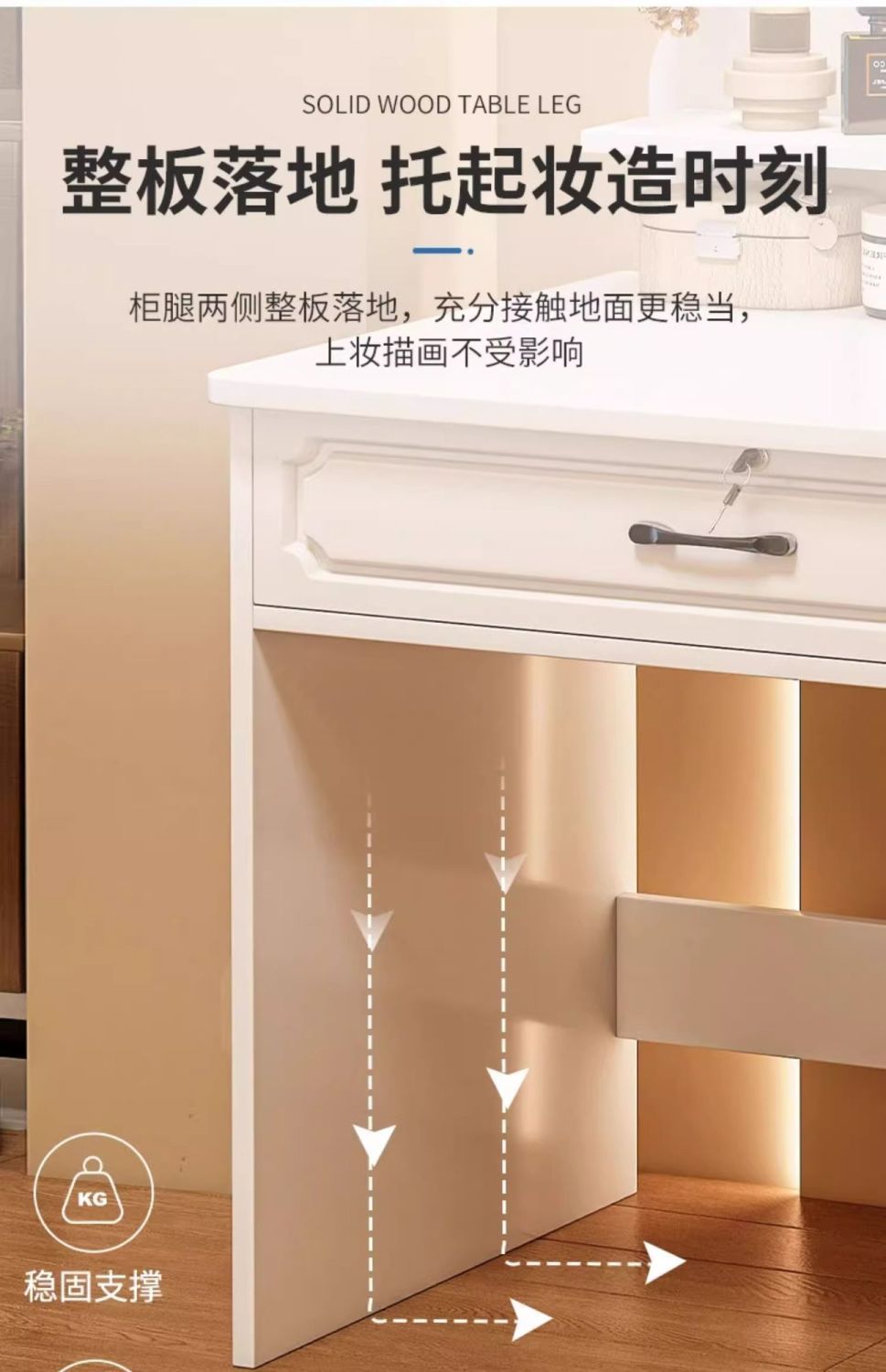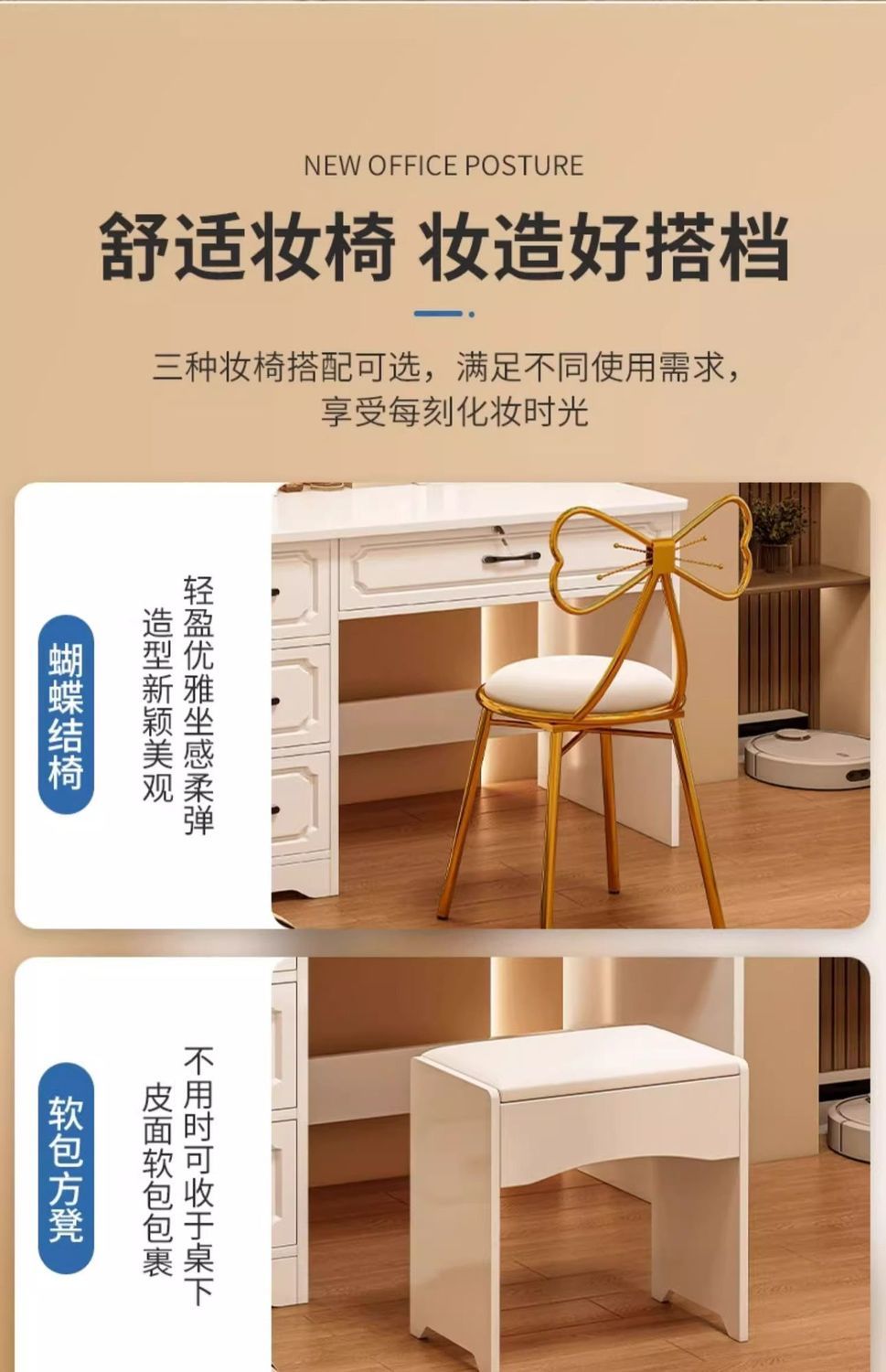 梳妆台卧室化妆台简约小户型镜子带灯出租房化妆桌组合收纳梳妆桌