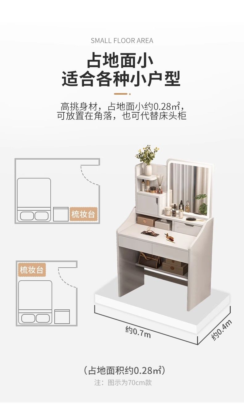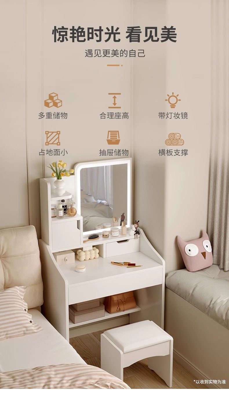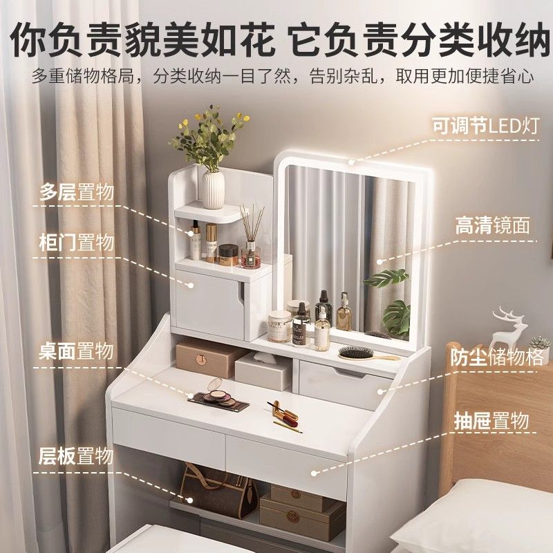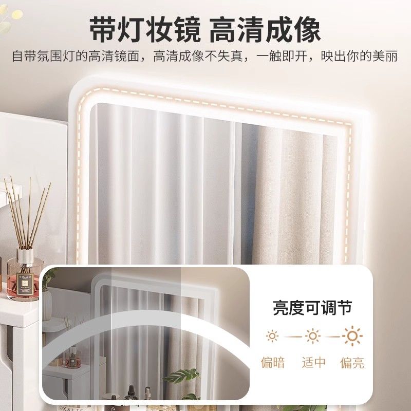 化妆桌卧室简约现代2025新款小户型梳妆台多功能收纳柜一体化妆台