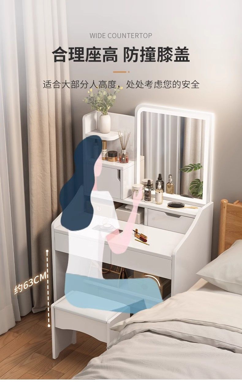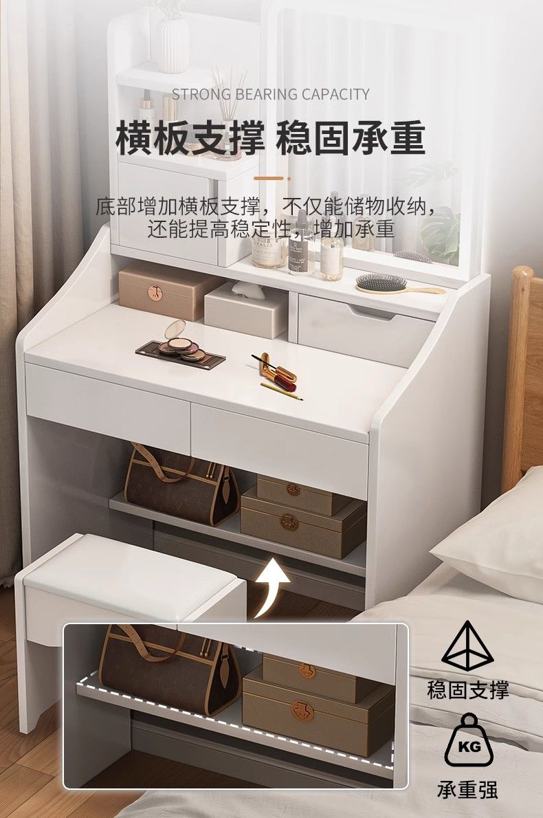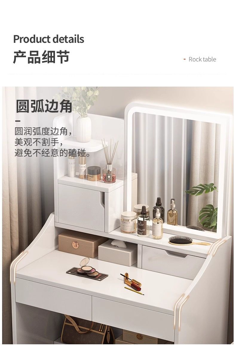 化妆桌卧室简约现代2025新款小户型梳妆台多功能收纳柜一体化妆台