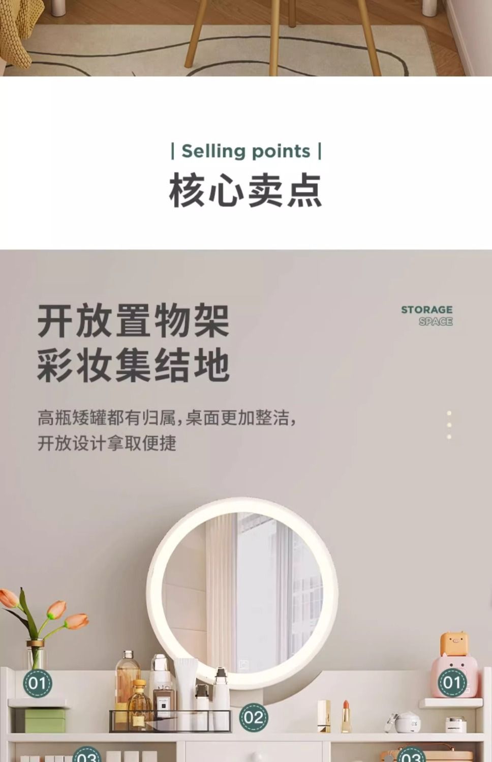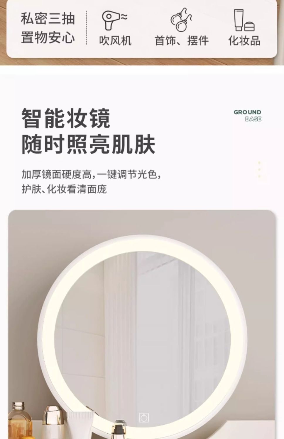 | 100cm three-drawer one + petal chair + smart mirror(100cm三抽一门+花瓣椅+智能镜) | USD $47.47 | 999999 piece available |