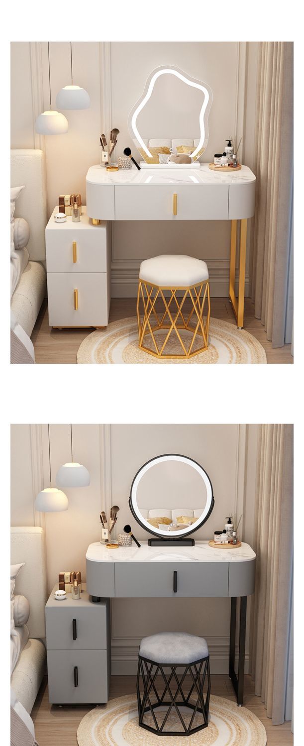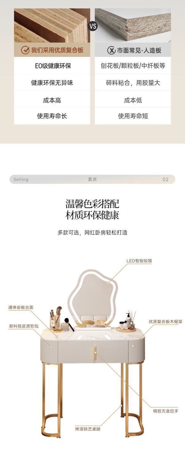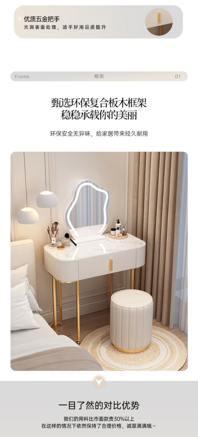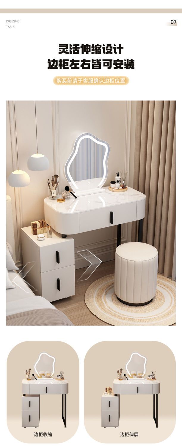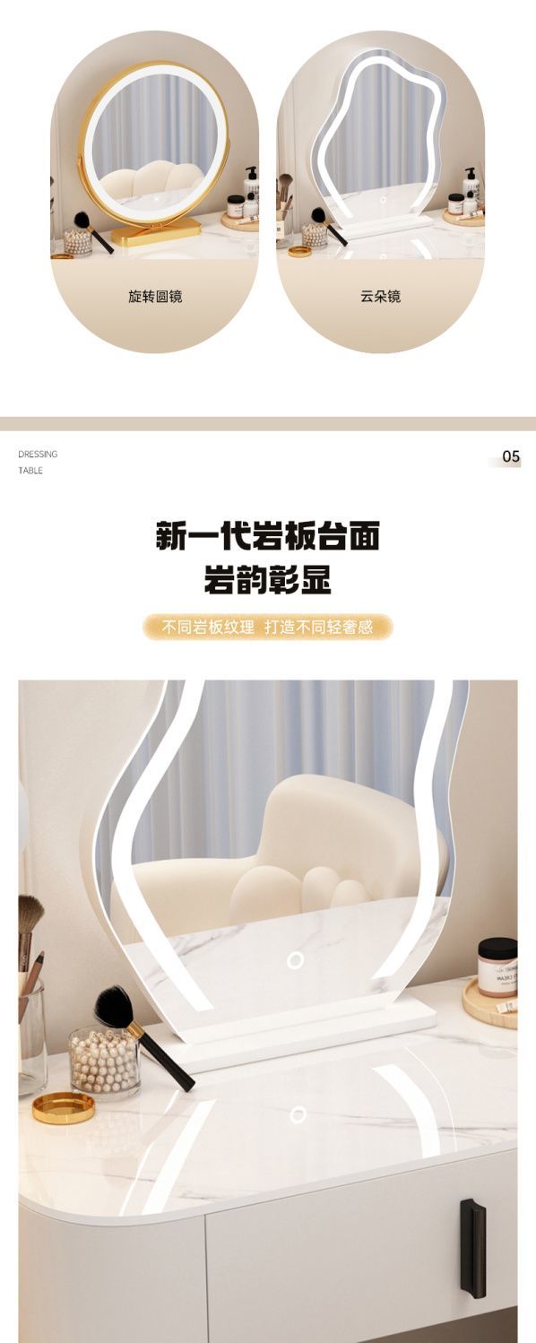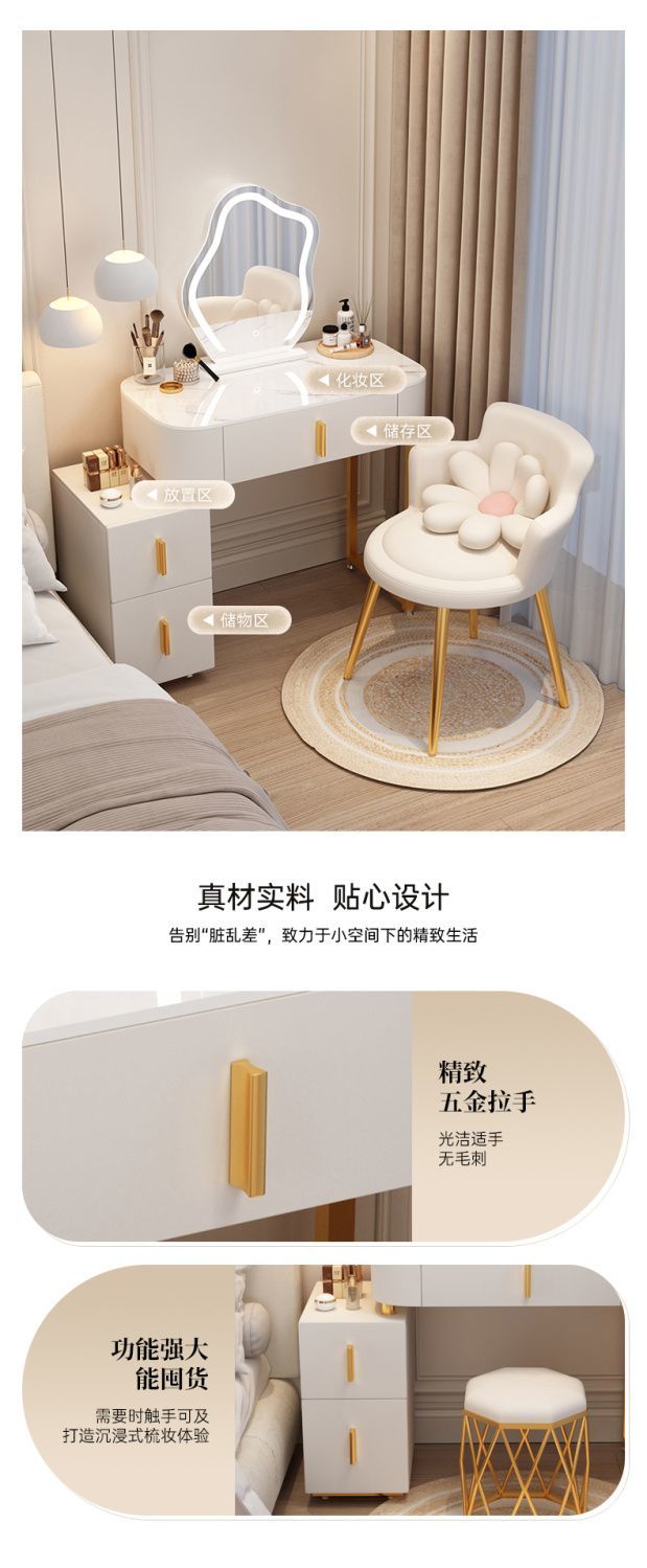 2024新款现代简约高级梳妆台小户型轻奢实木奶油风化妆台带智能柜