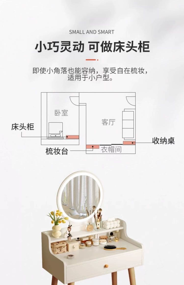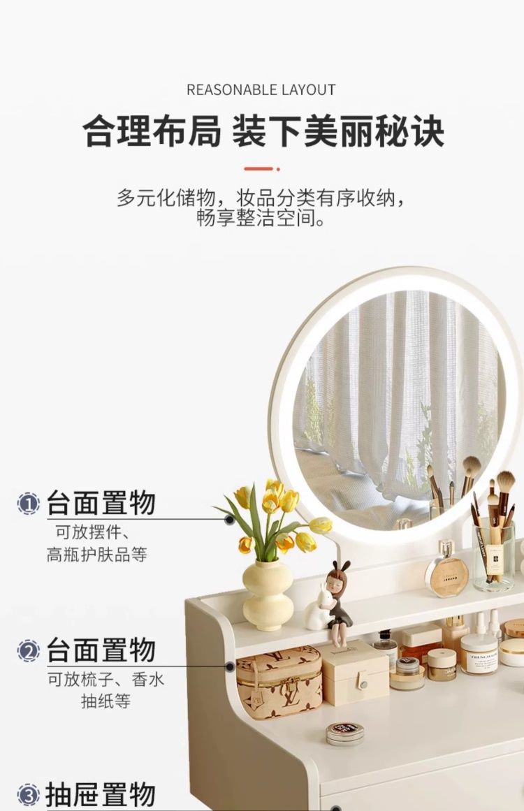 梳妆台小型卧室现代简约2025新款轻奢小户型化妆桌角落收纳柜一体