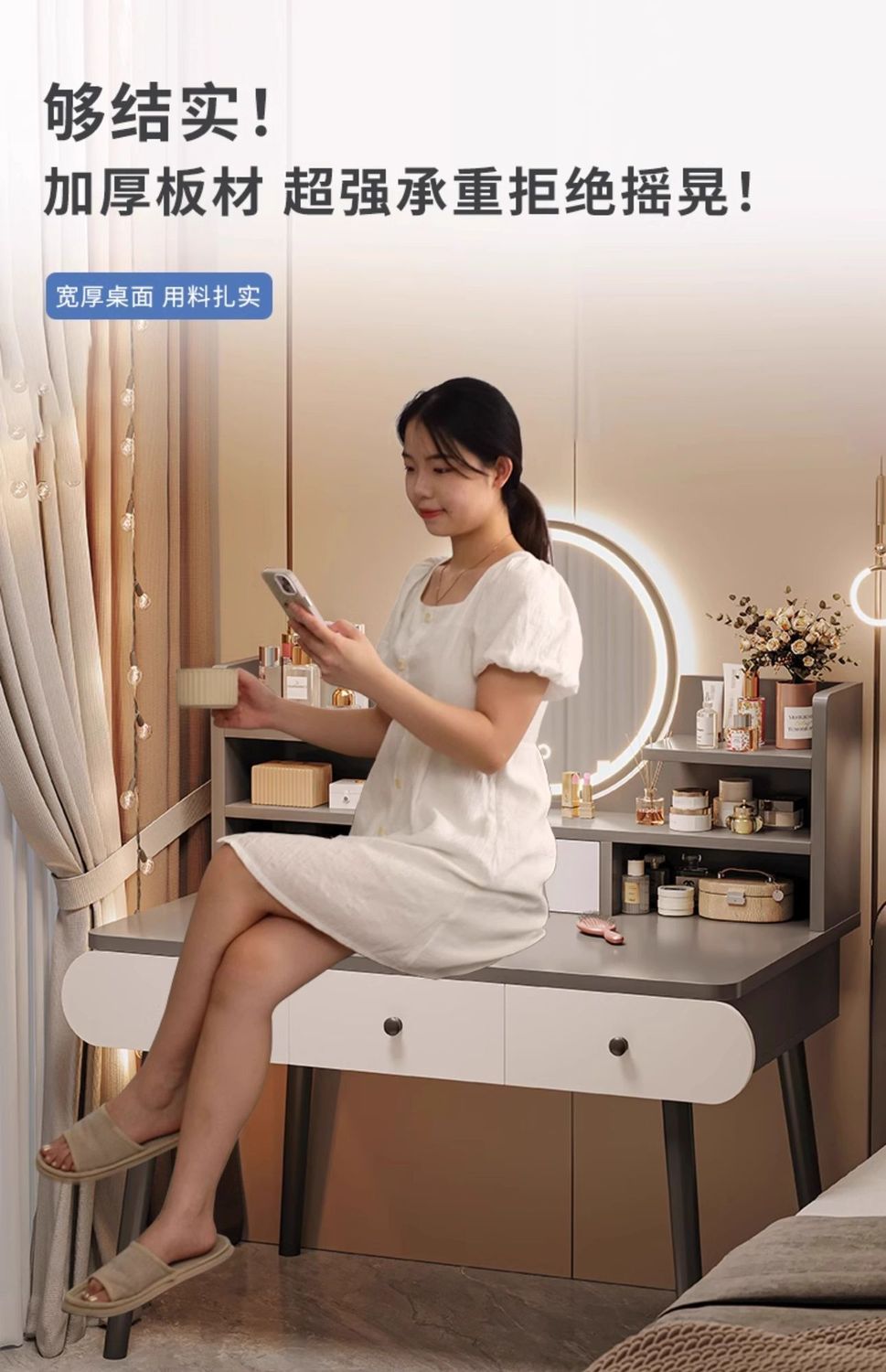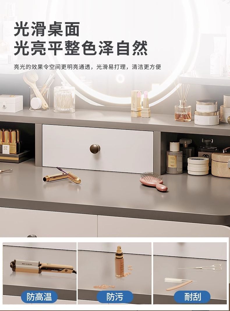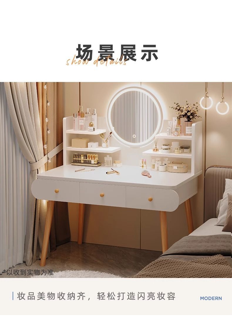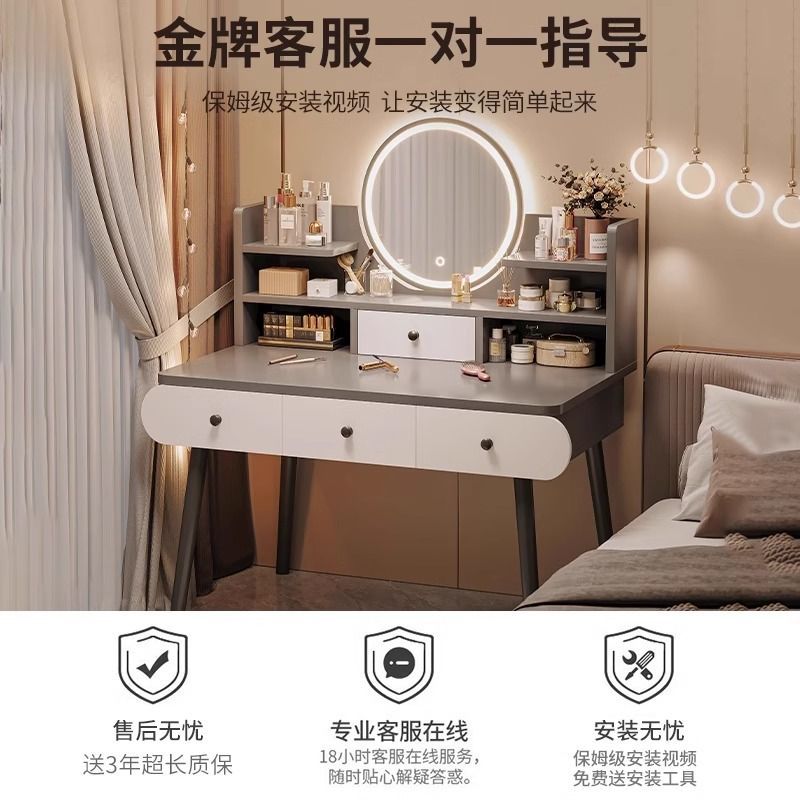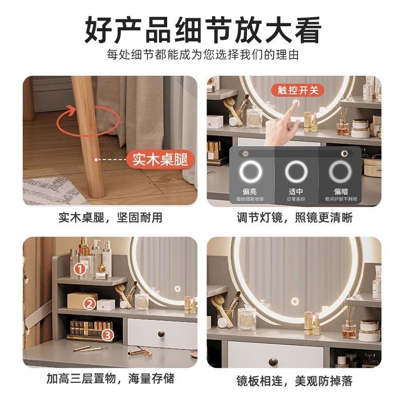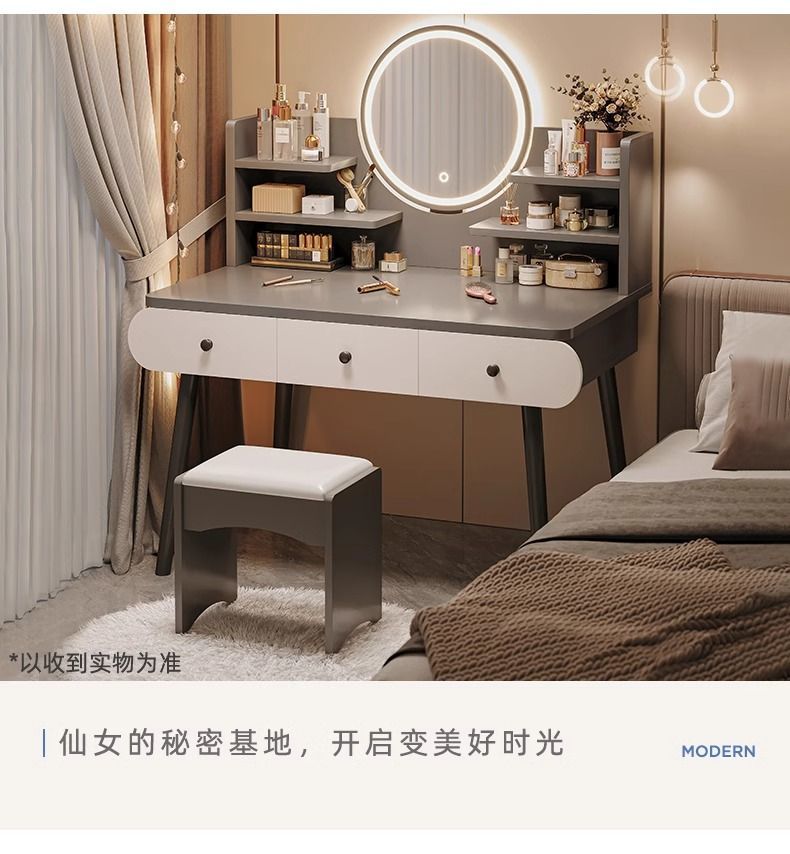 梳妆台卧室简约现代2024新款轻奢小户型化妆桌主卧床头收纳柜一体
