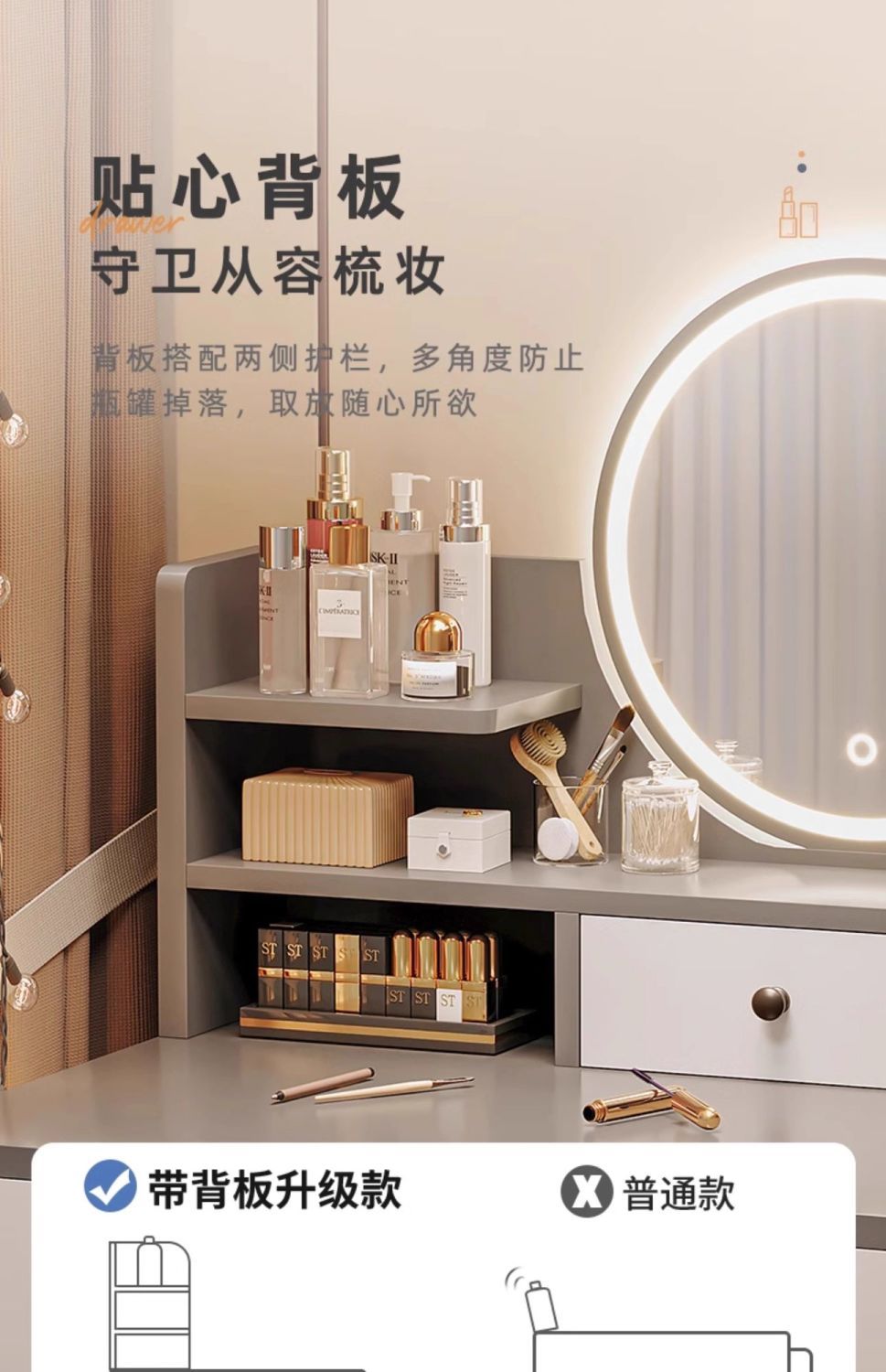 | smart makeup mirror + three layers and three drawers] 100cm gray(智能妆镜+三层三抽】100cm灰) | USD $25.6 | 999999 piece available |