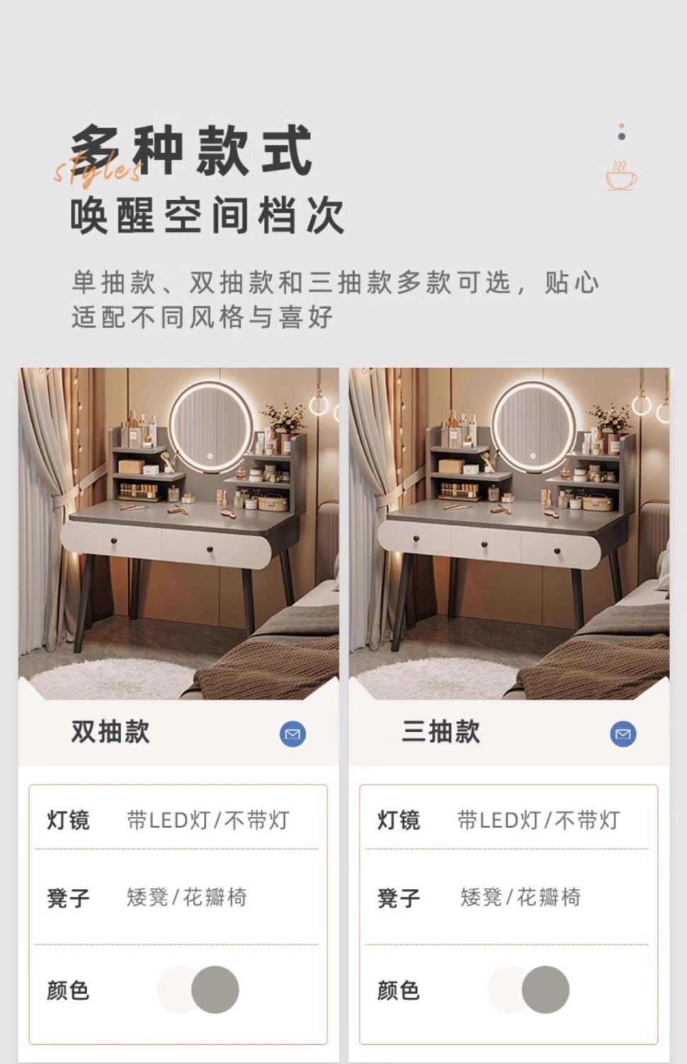 | smart makeup mirror + three-layer single drawer + stool] 60cm gray(智能妆镜+三层单抽+凳子】60cm灰) | USD $23.64 | 999999 piece available |