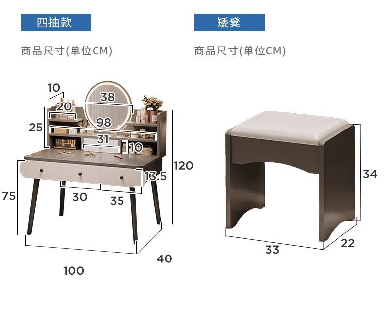 | smart makeup mirror + three layers and four drawers + stool] 100cm gray(智能妆镜+三层四抽+凳子】100cm灰) | USD $33.48 | 999999 piece available |
