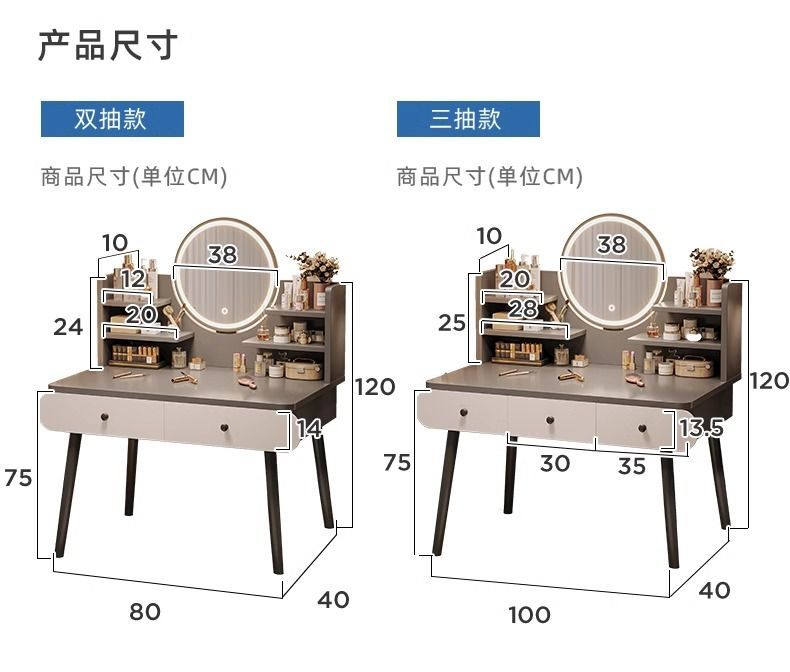 | smart makeup mirror + three-layer double drawer + stool] 80cm gray(智能妆镜+三层双抽+凳子】80cm灰) | USD $27.57 | 999999 piece available |
