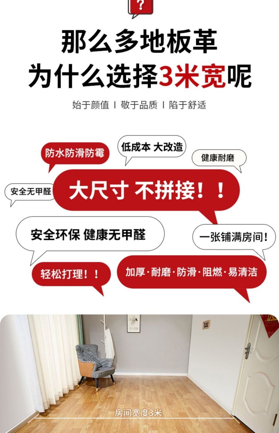 3.7米宽巨厚地板革耐磨水泥地直接铺垫加厚PVC大面积地毯地板贴胶