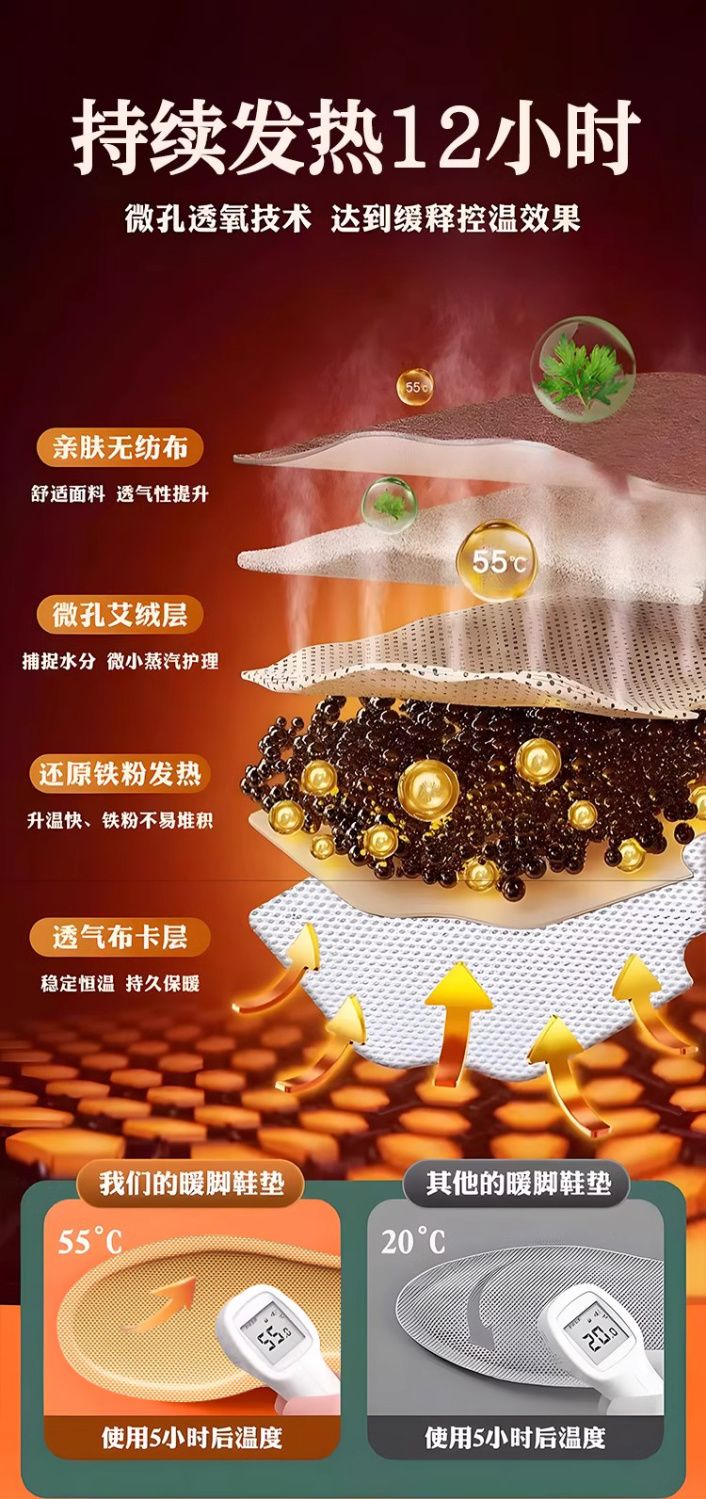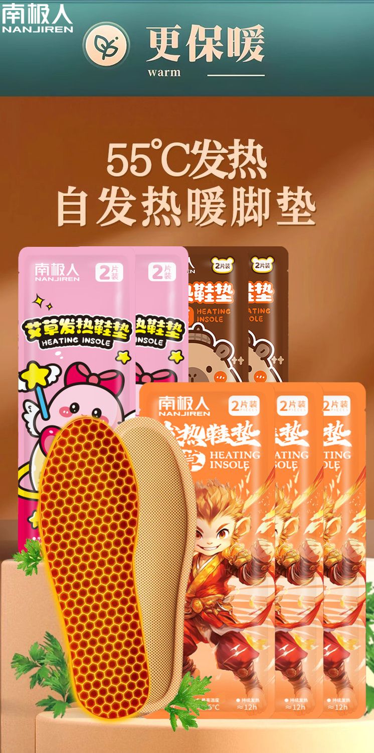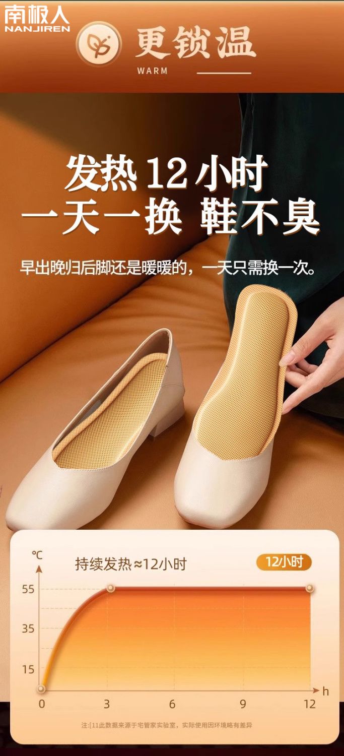 南极人艾草自发热鞋垫男免充电可行走艾草女暖足贴暖脚底加热垫宝