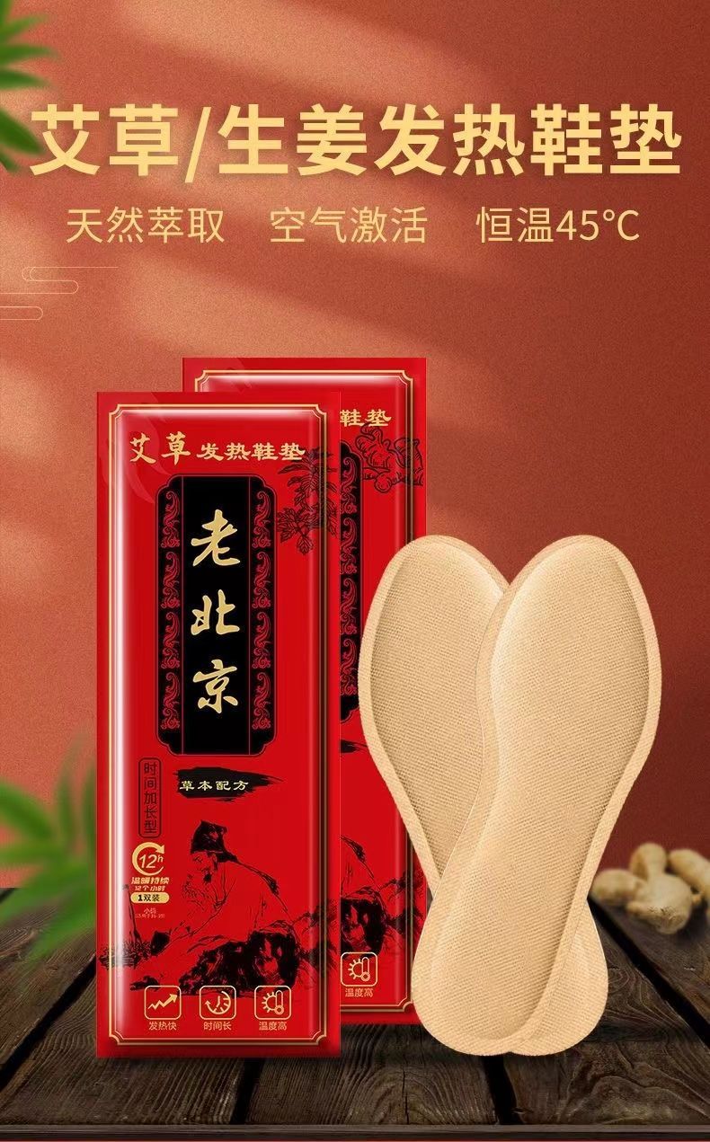 老北京艾草生姜自发热鞋垫男女暖足贴暖宝宝贴自热鞋垫加热鞋垫