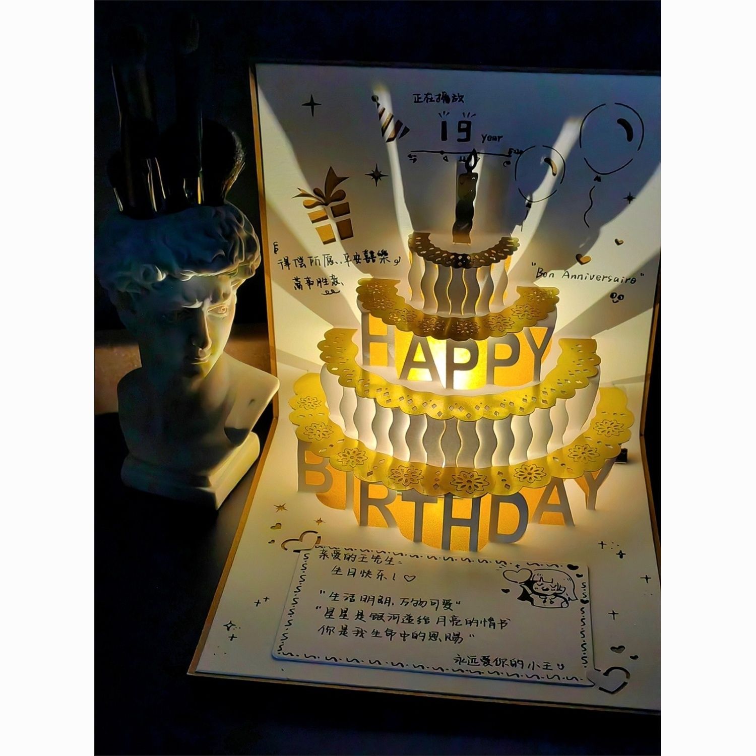 生日贺卡3d立体带灯光折叠成品精致烫金蛋糕礼物卡片带信封送闺蜜