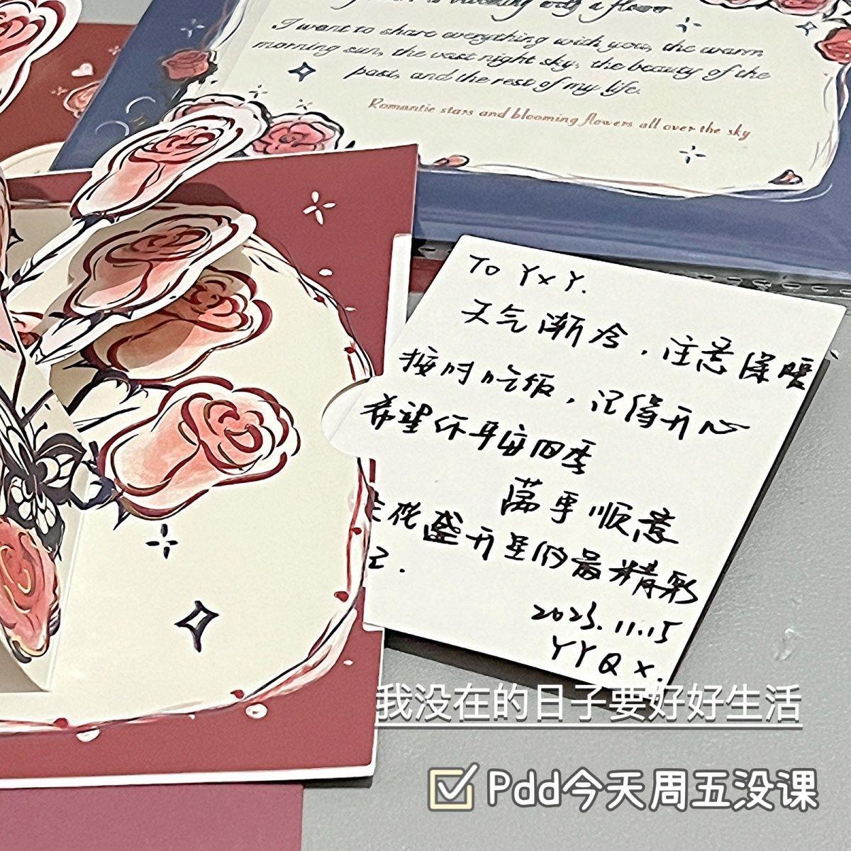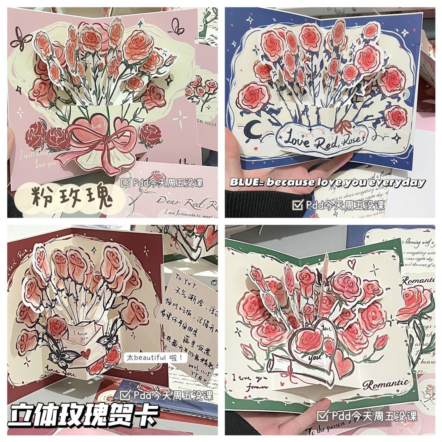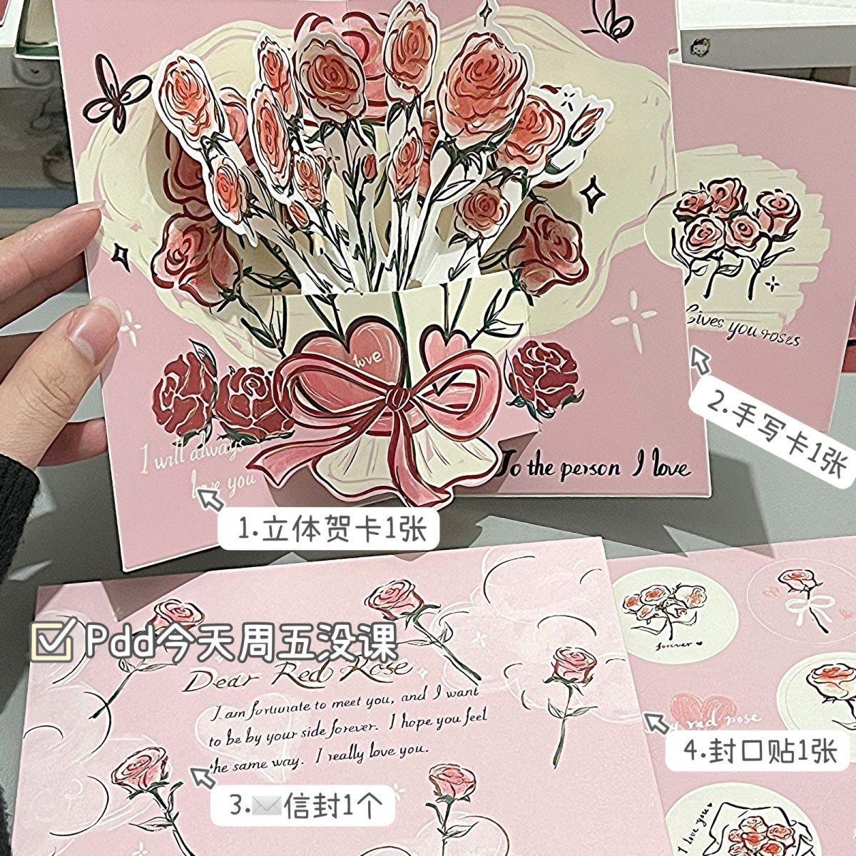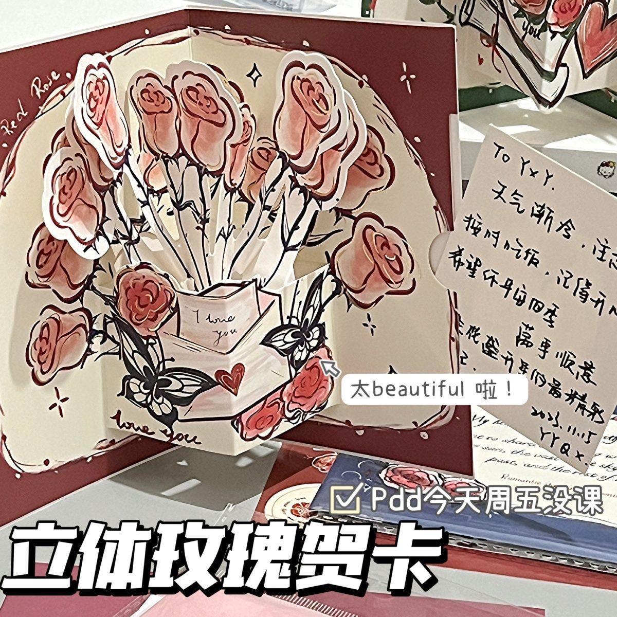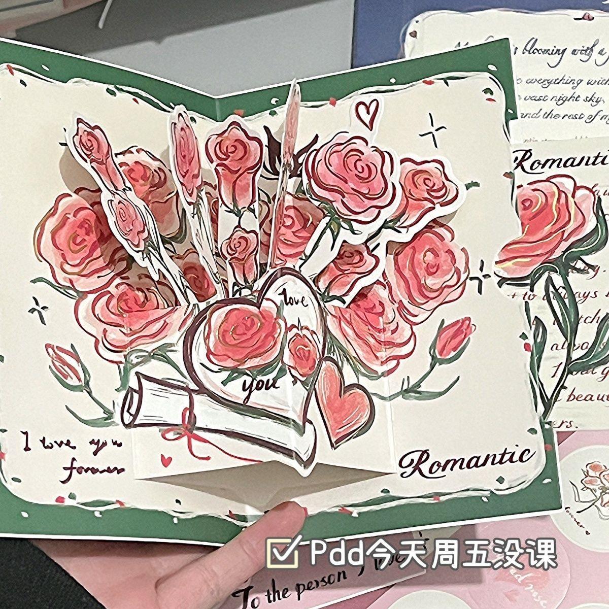 立体玫瑰贺卡ins高颜值3D复古可折叠祝福卡片套装创意礼物送朋友