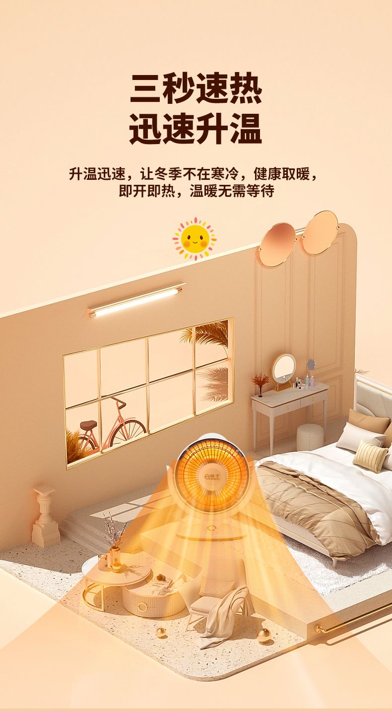 扬子太阳取暖器家用节能电暖气电热台式小型速热电暖器火器火炉
