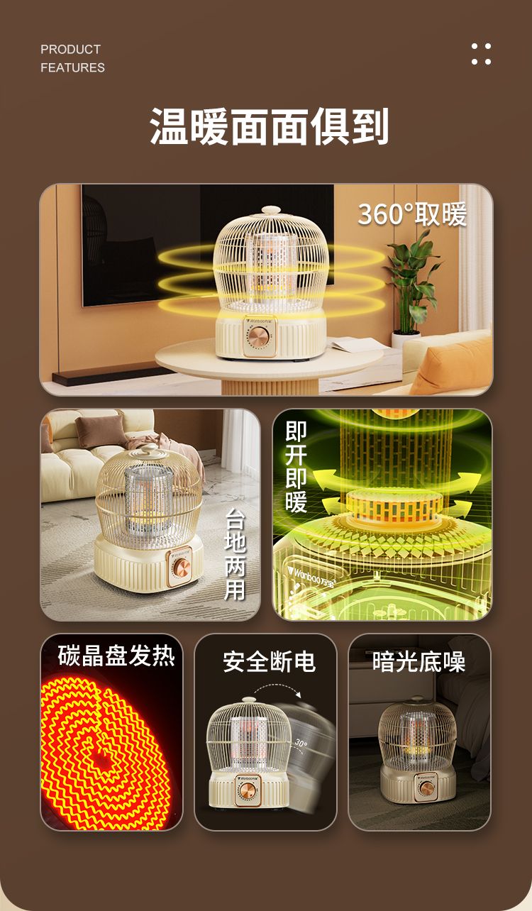 万宝小太阳取暖器台式家用电暖器小型速热电暖气家用式静音烤火炉