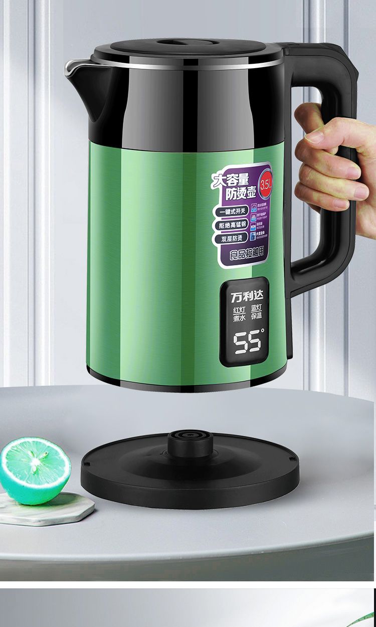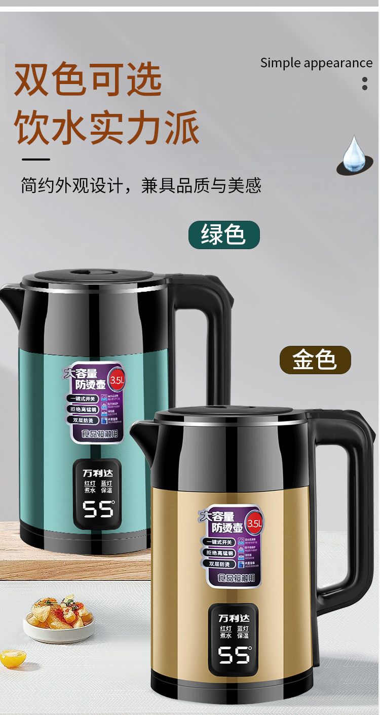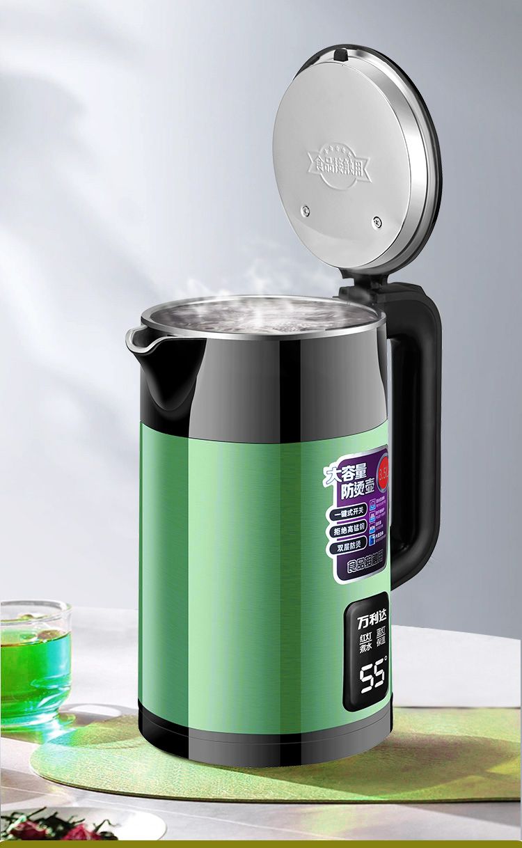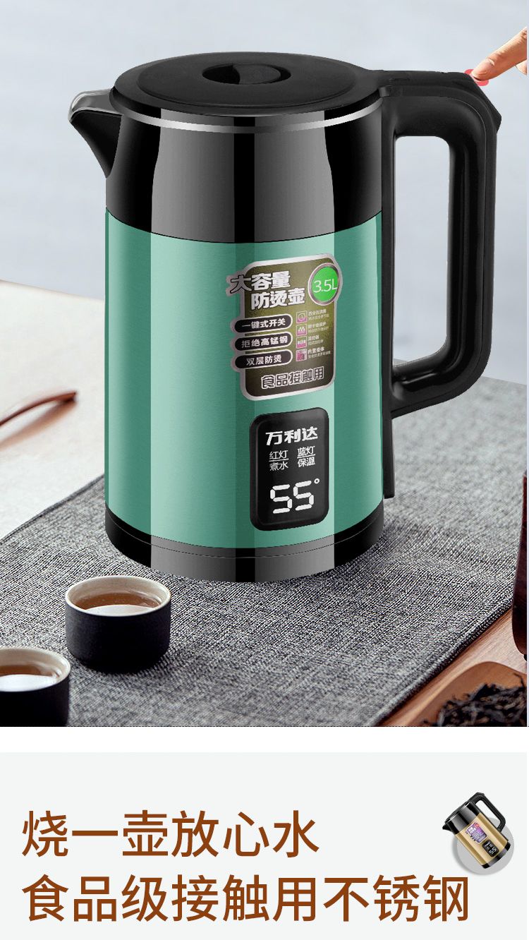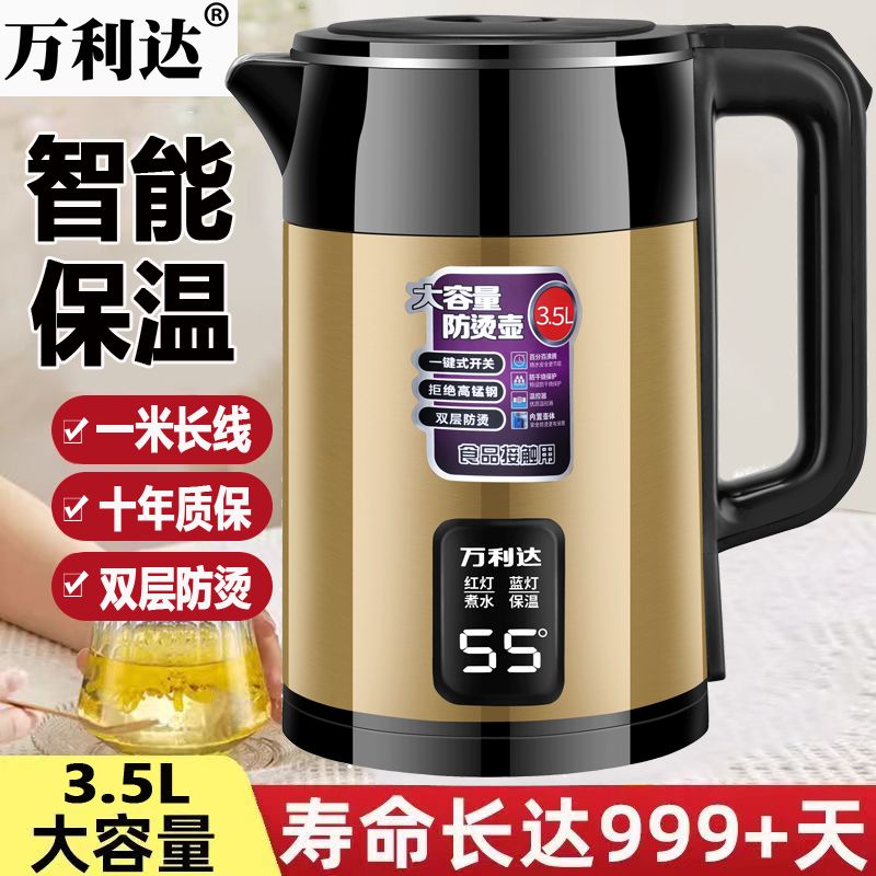 万利达电热水壶304烧水壶双层防烫家用耐用智能保温开水壶电水壶