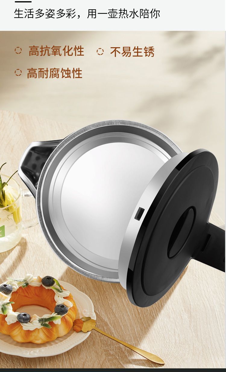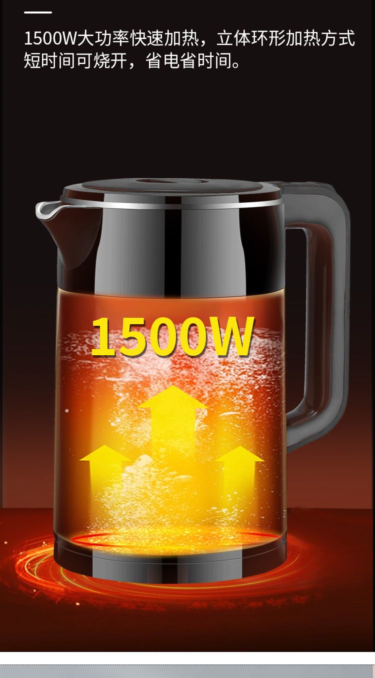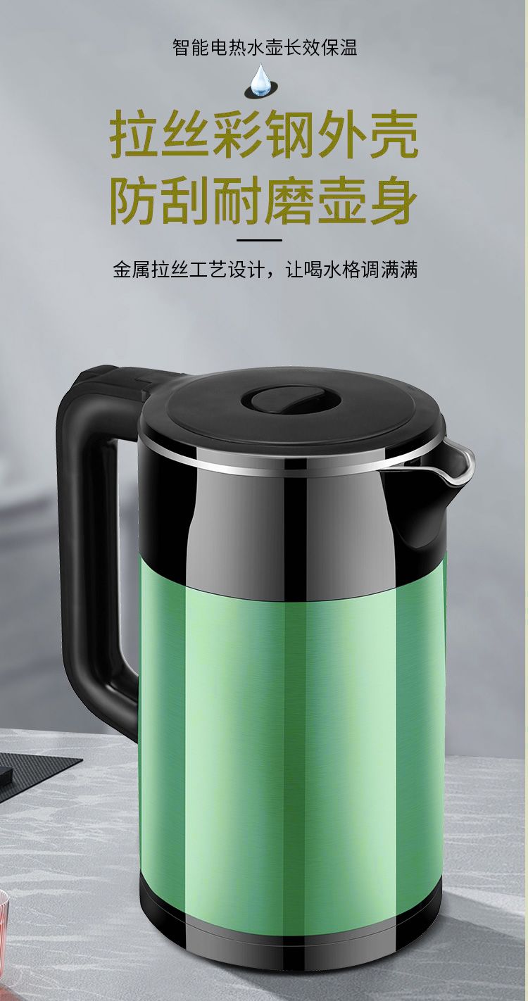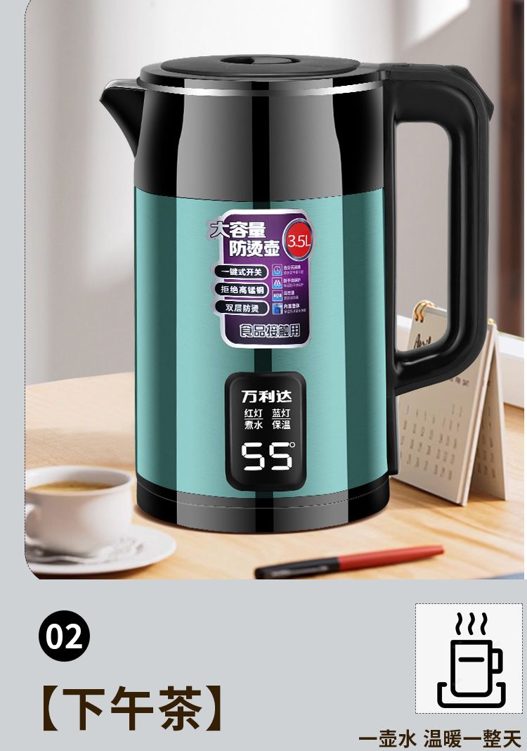 万利达电热水壶304烧水壶双层防烫家用耐用智能保温开水壶电水壶