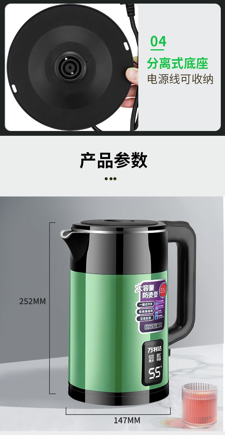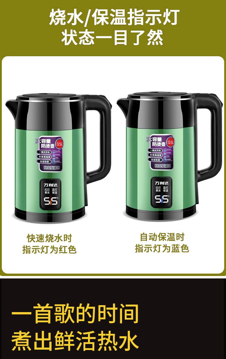 | 3.5 liters green [imported temperature control ai smart heat preservation] 1 m wire(3.5升绿色【进口温控AI智能保温】1米线) | USD $13.2 | 999999 piece available |