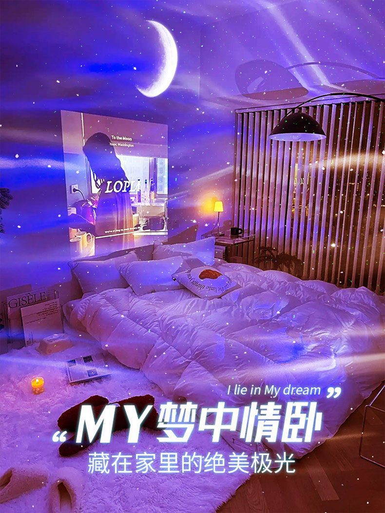 北极光月亮星空投影灯激光满天星灯光小夜灯直播间蓝牙音响氛围灯