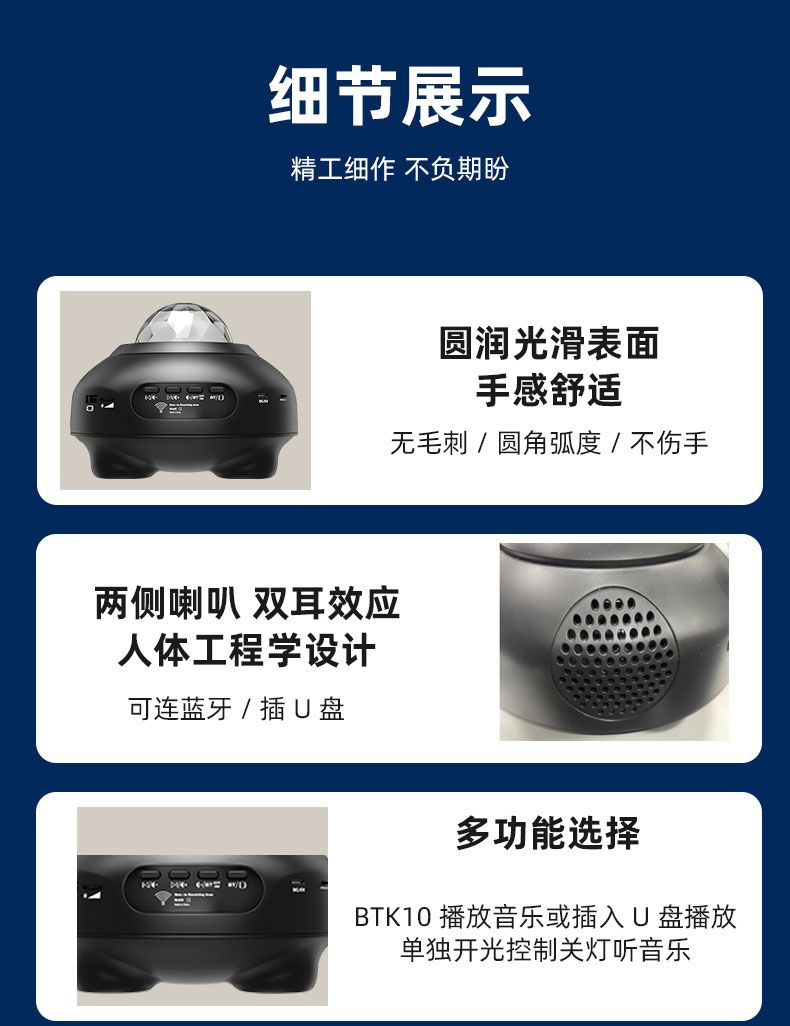 | [plug-in type] ultra clear water ripple + bluetooth speaker + remote control + button(【插电款】超清水波纹+蓝牙音箱+遥控+按键) | USD $12.63 | 999999 piece available |