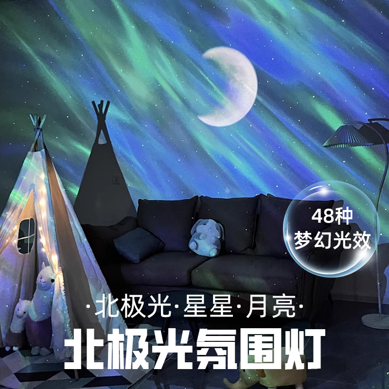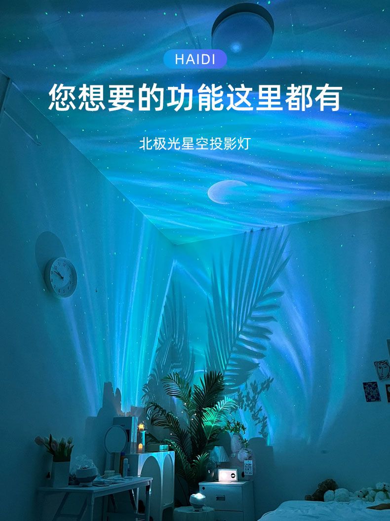 新款北极光星空投影灯房间室内氛围灯星星小夜灯梦幻少女心家用