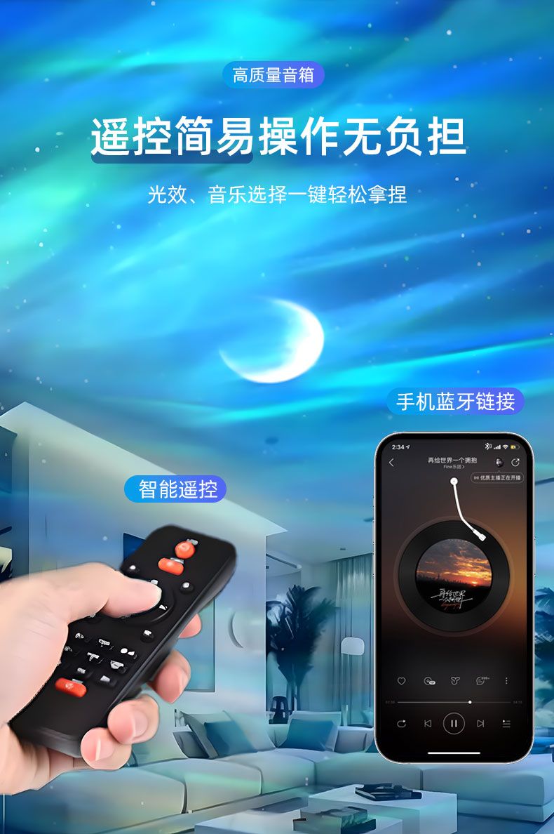 | [upgrade] dynamic northern lights + remote control + bluetooth + button + audio(【升级款】动态北极光+遥控+蓝牙+按键+音响) | USD $11.9 | 999999 piece available |