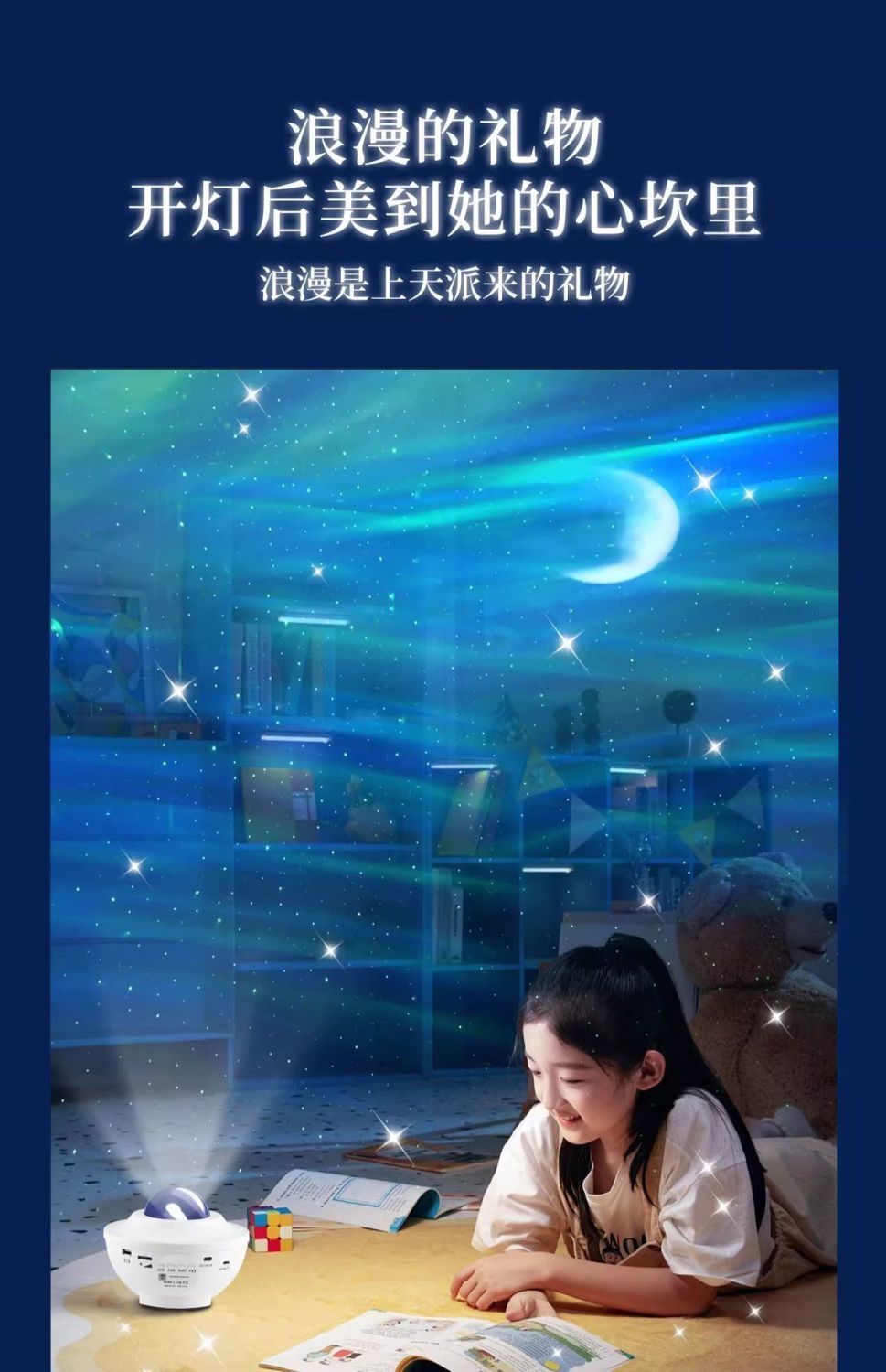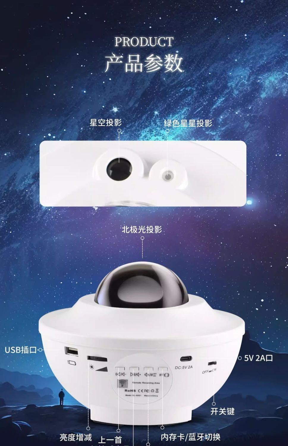 | white [charging 4h endurance] northern lights + star moon + bluetooth speaker(白【充电4H续航】北极光+星星月亮+蓝牙音箱) | USD $33.63 | 999999 piece available |