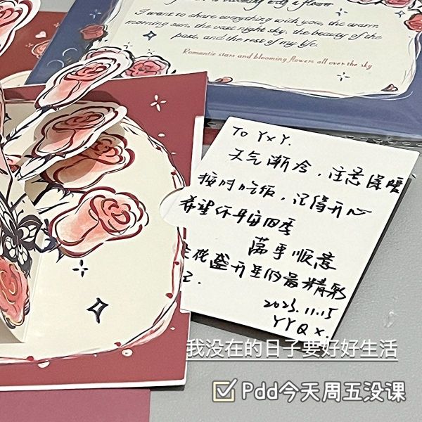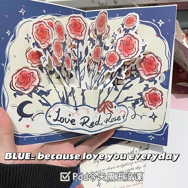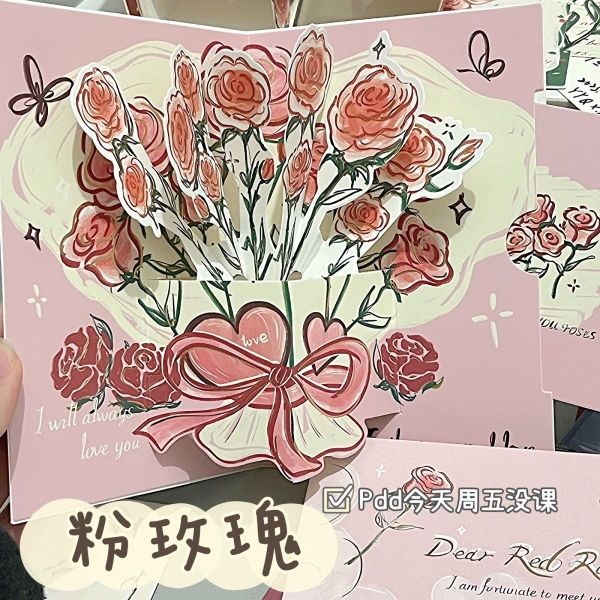 立体玫瑰贺卡ins高颜值3D复古可折叠祝福卡片套装创意礼物送朋友