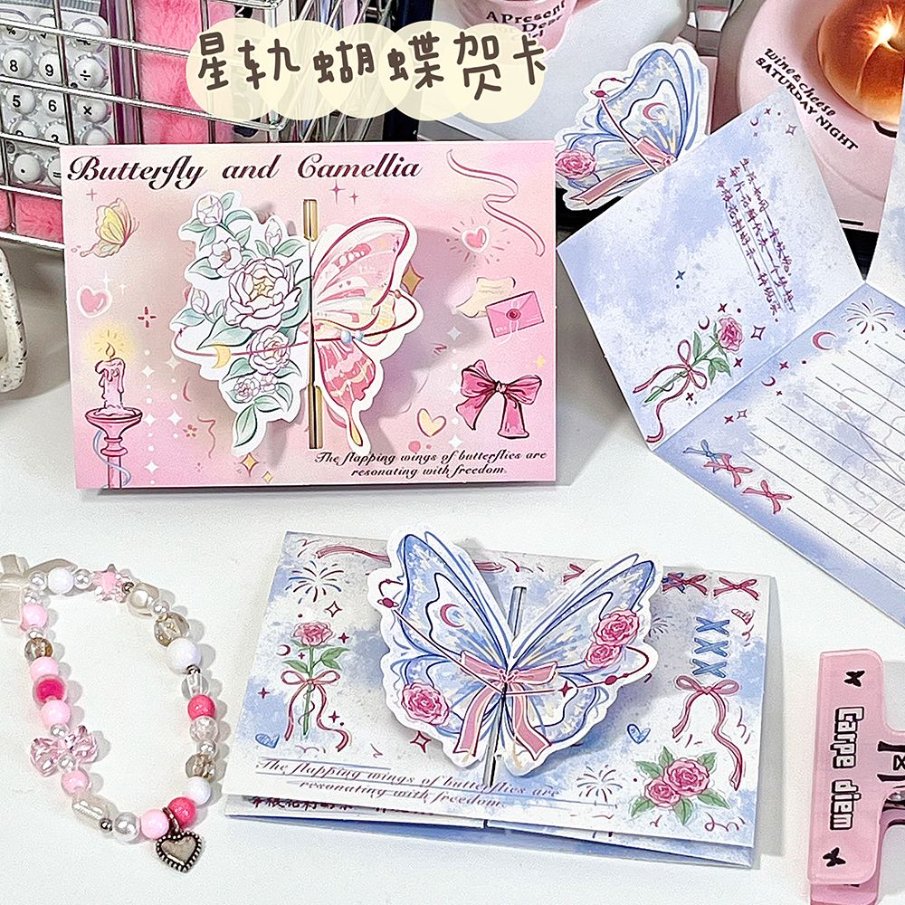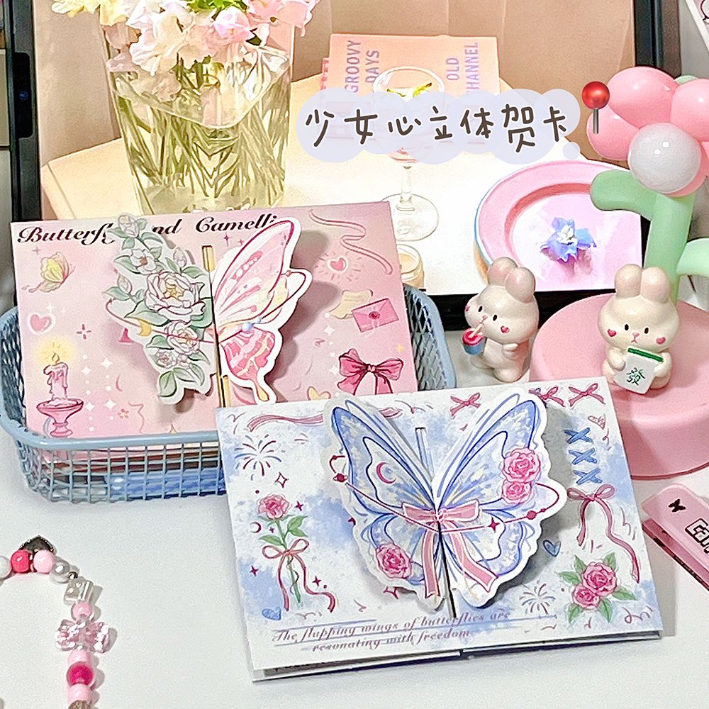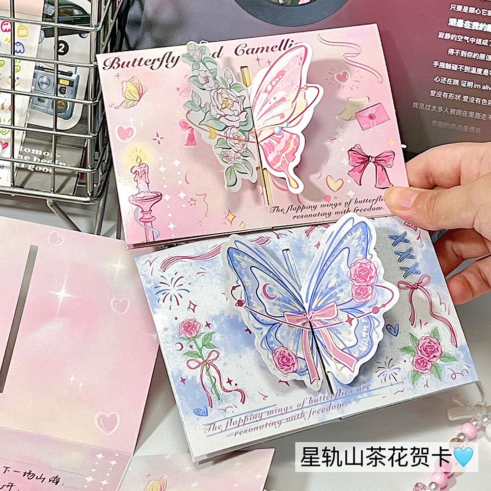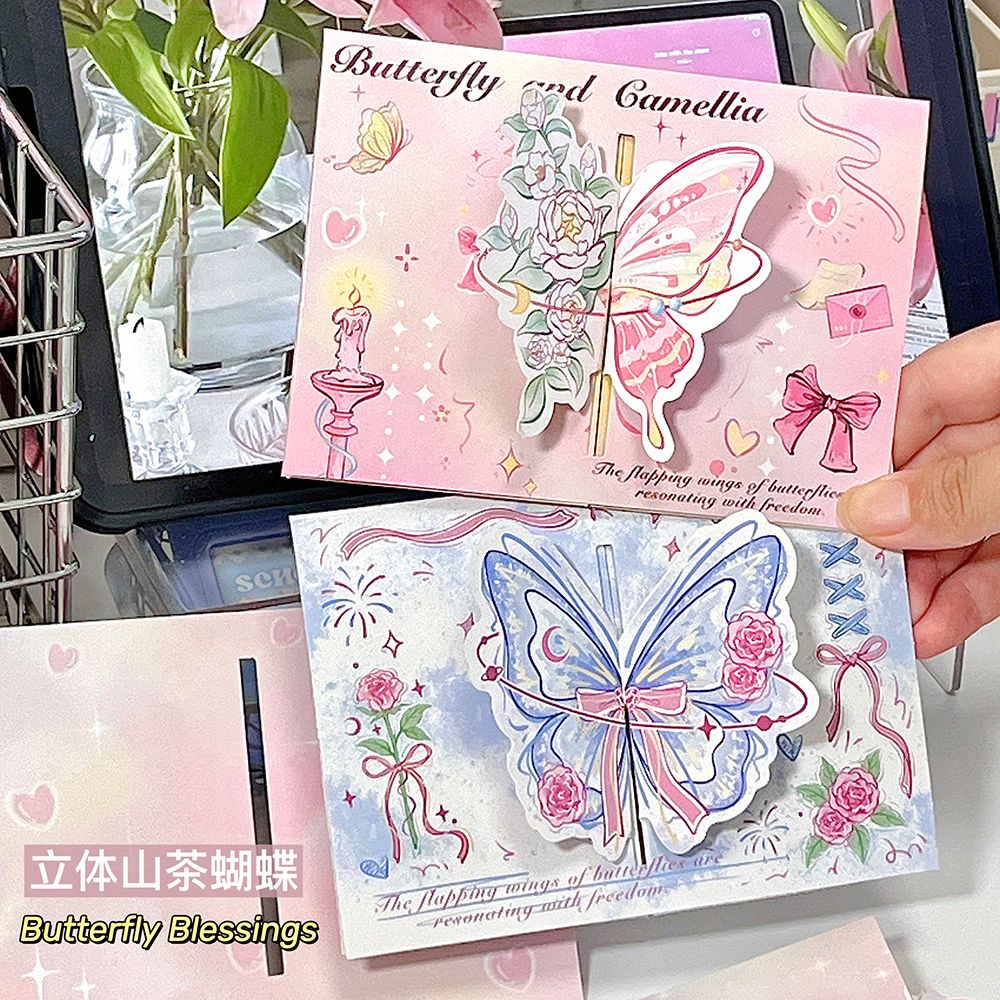 ins山茶花蝴蝶立体贺卡3d可折叠祝福留言贺卡生日礼物卡片送闺蜜