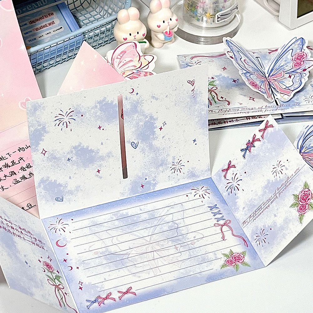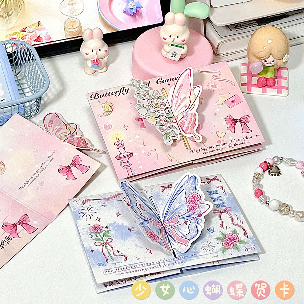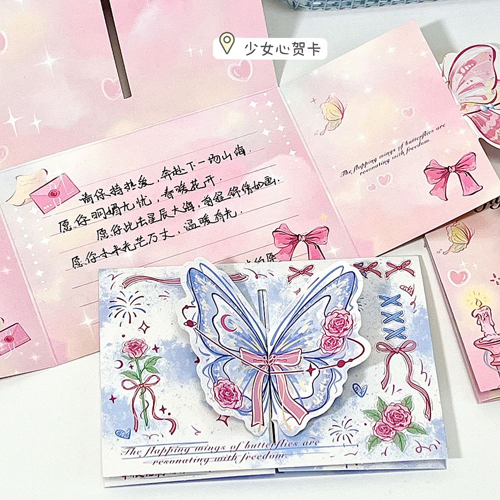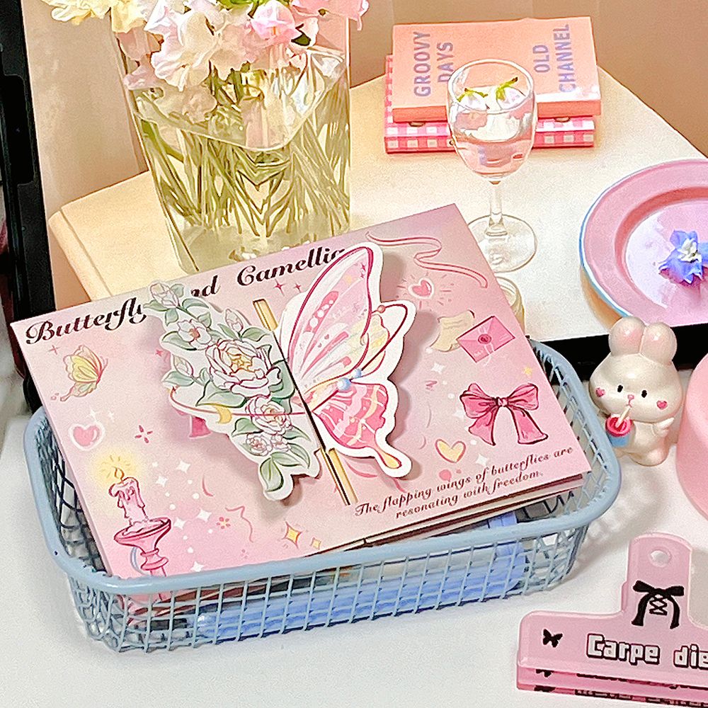 ins山茶花蝴蝶立体贺卡3d可折叠祝福留言贺卡生日礼物卡片送闺蜜