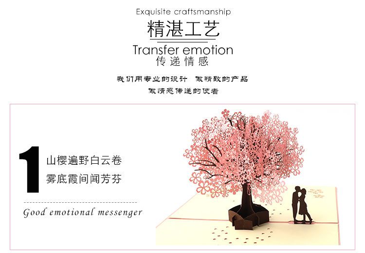 | valentine's day cherry tree greeting card(情人节樱花树贺卡) | USD $2.32 | 999999 piece available |