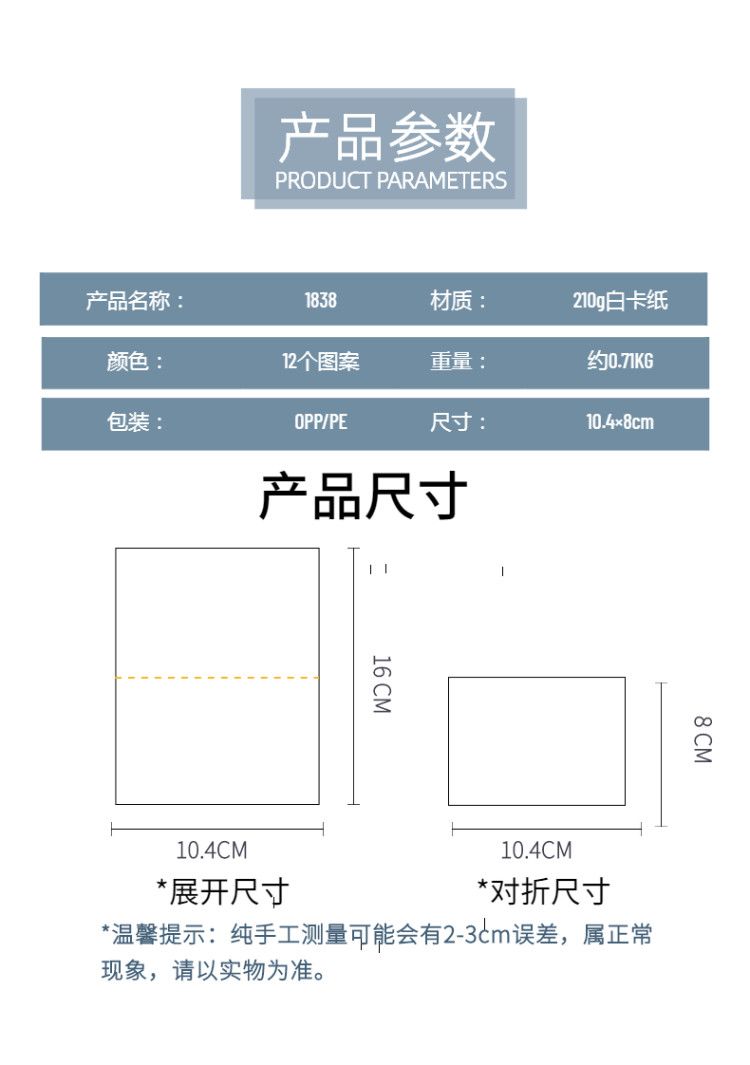 | 1836 cards 96 sheets/bag(1836卡片96张/包) | USD $4.53 | 999999 piece available |