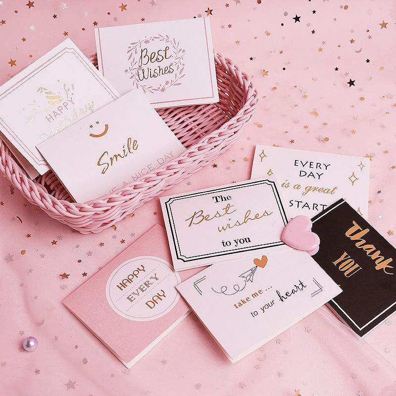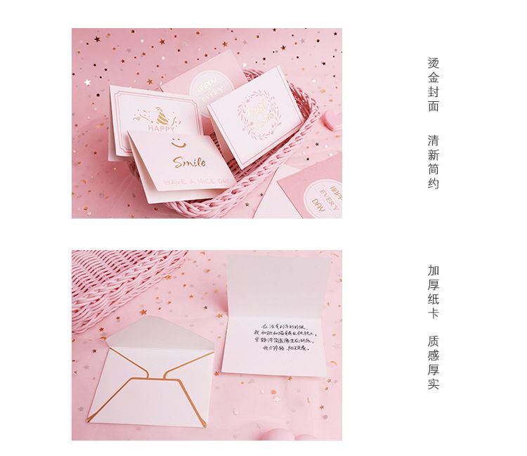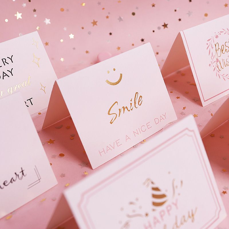 ins节日烫金生日贺卡少女元旦祝福明信片迷你硬卡纸新年感谢卡片