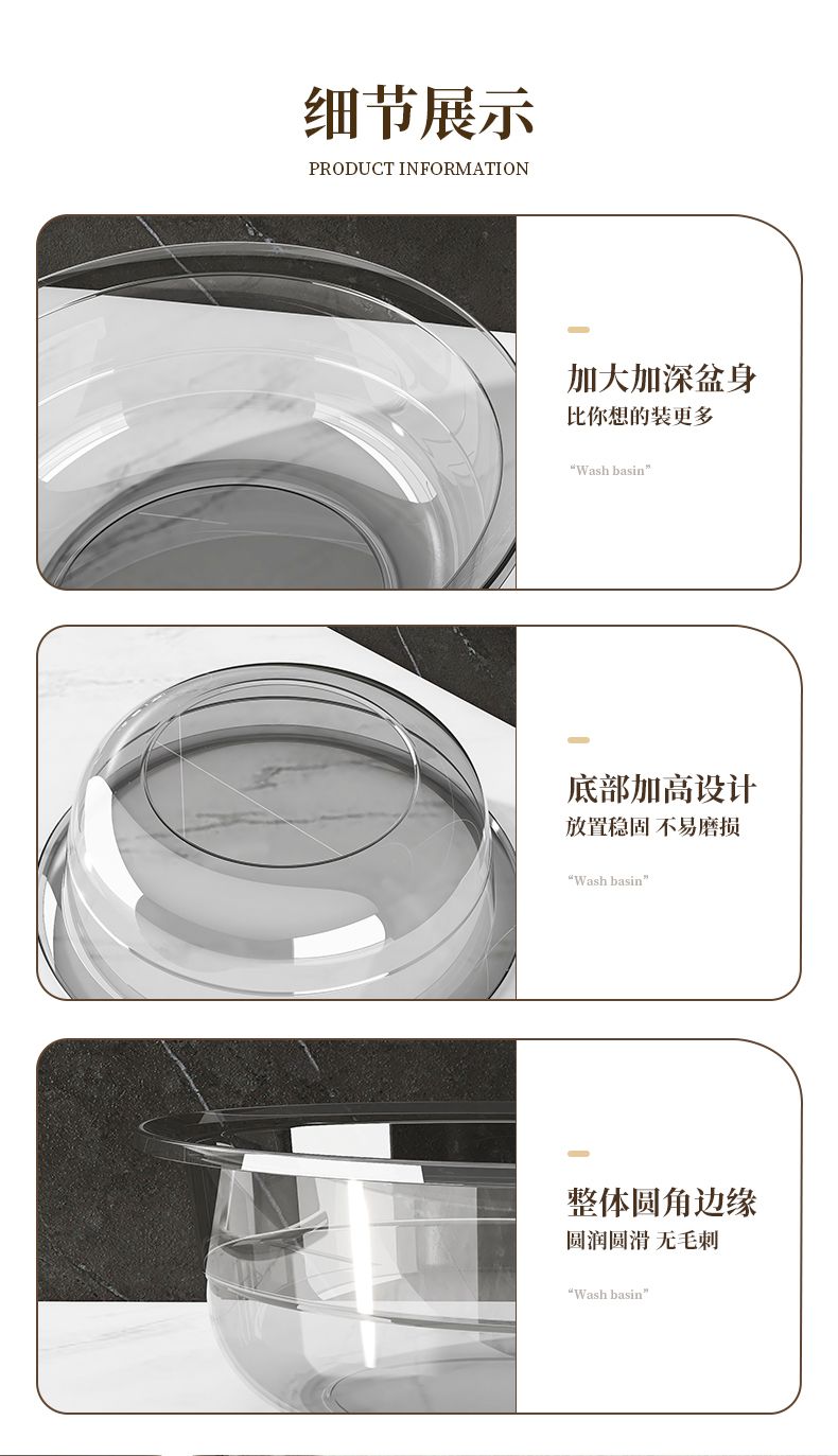 透明洗脸盆卫生间盆子家用加厚脸盆ins风宿舍洗衣服洗脚盆洗菜盆